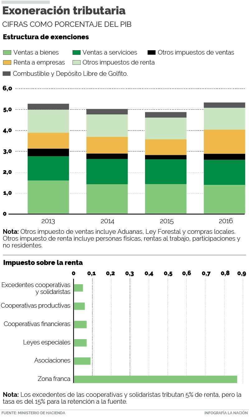Dicho monto significó el 54% del total de las exoneraciones en dicho año las cuales fueron de 5,34% de la producción, o sea ¢1,6 billones.