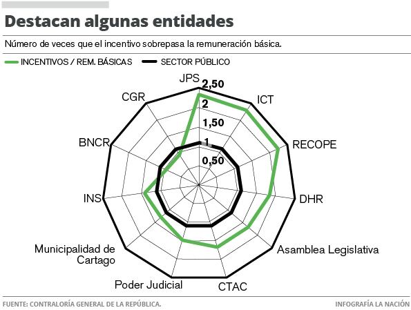Algunas entidades. Según el órgano contralor, en algunas entidades la relación entre los incentivos y los salarios base sobrepasa el promedio del sector público, como en Recope, en la Defensoría de los Habitantes y el Poder Judicial.