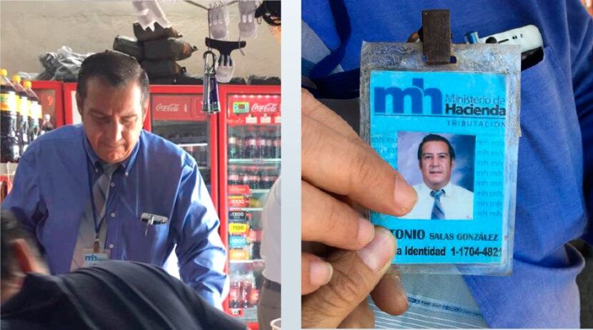 La persona dice llamarse Antonio Salas González y se presenta como miembro de la Dirección General de Tributación. Incluso, muestra un carné con el número de céduda 1-1704-4821.