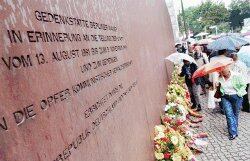 El ministro alemán de Interior, el conservador Wolfgang Schauble, y el alcalde socialdemócrata de Berlín, Klaus Wowereit, depositaron ofrendas florales al pie del monumento a las víctimas, en la calle Bernauer.