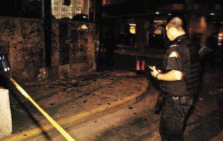 En el edificio, ubicado en una de las avenidas más transitadas de la ciudad, se veían los impactos de bala y patrullas de la policía local custodiando el lugar.
