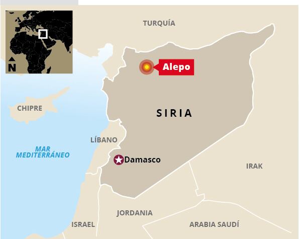 Alepo, segunda ciudad del país, se encuentra dividida desde 2012 en dos áreas: una bajo control de los rebeldes, al este, y otra en poder del régimen, al oeste.