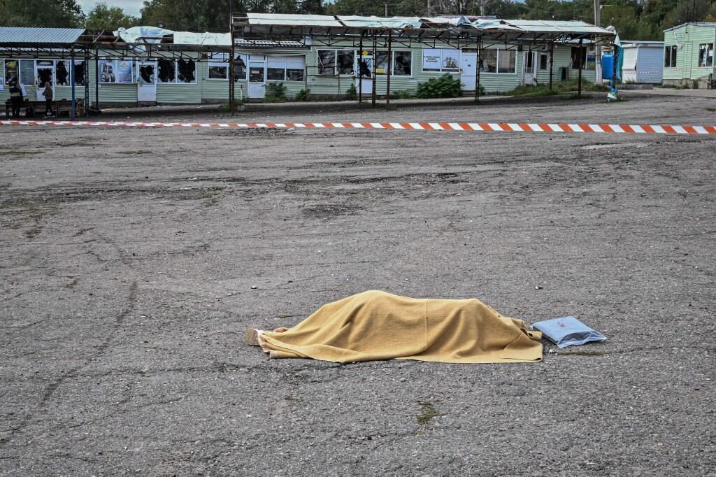 Según la presidencia ucraniana, 16 misiles S-300 rusos cayeron en la zona, unas armas tierra-aire que los rusos también utilizan para atacar en tierra. En el lugar, se veían dos hileras de coches con los cristales rotos y las carrocerías acribilladas. Entre ellos, yacían cuerpos sin vida.