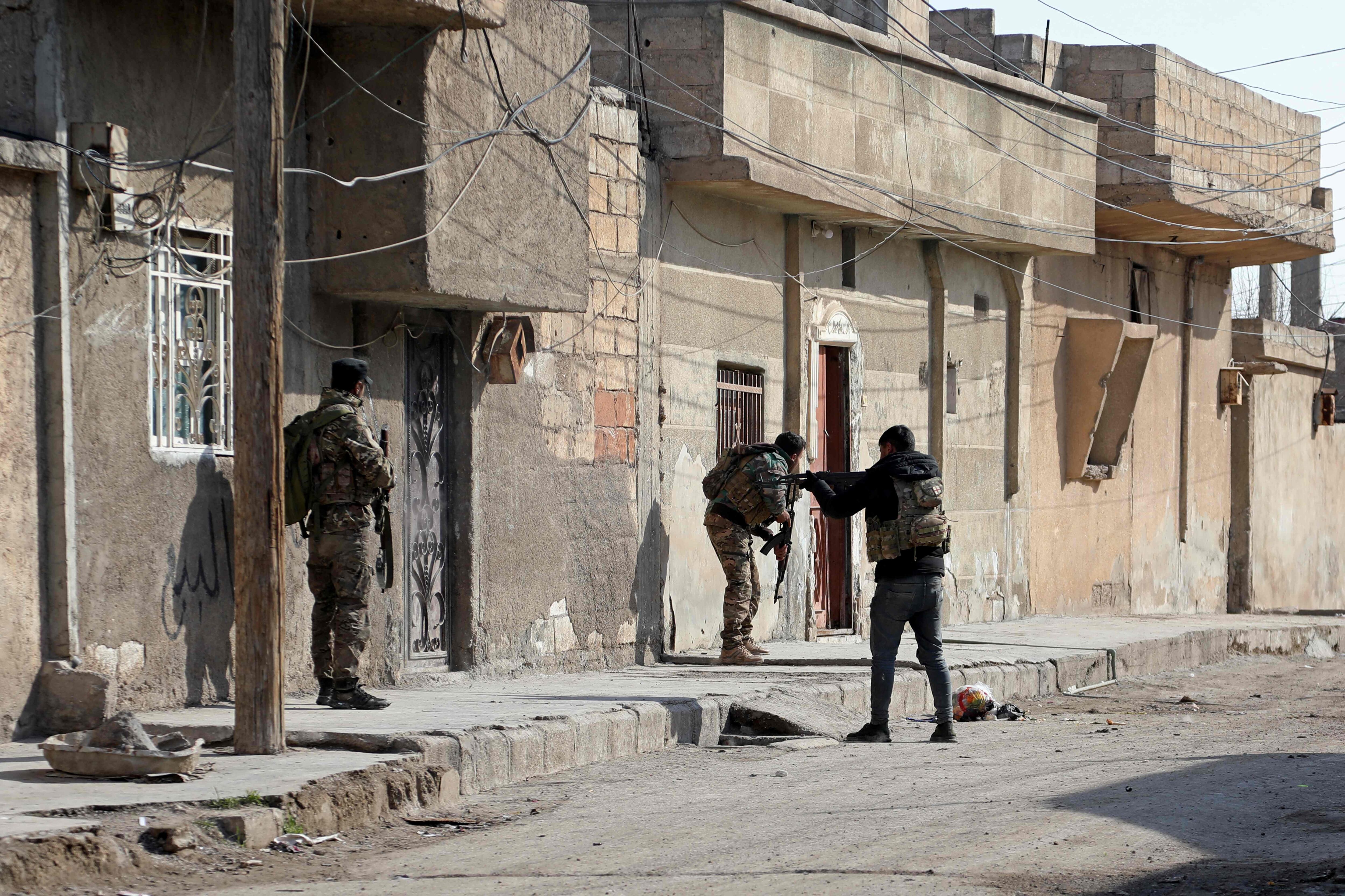 Miles de civiles fueron desplazados por los enfrentamientos en torno a la prisión de Ghwayran y sus alrededores, en el noreste del país, una de los mayores centros penitenciarios de yihadistas de Siria, custodiado por las fuerzas kurdas.