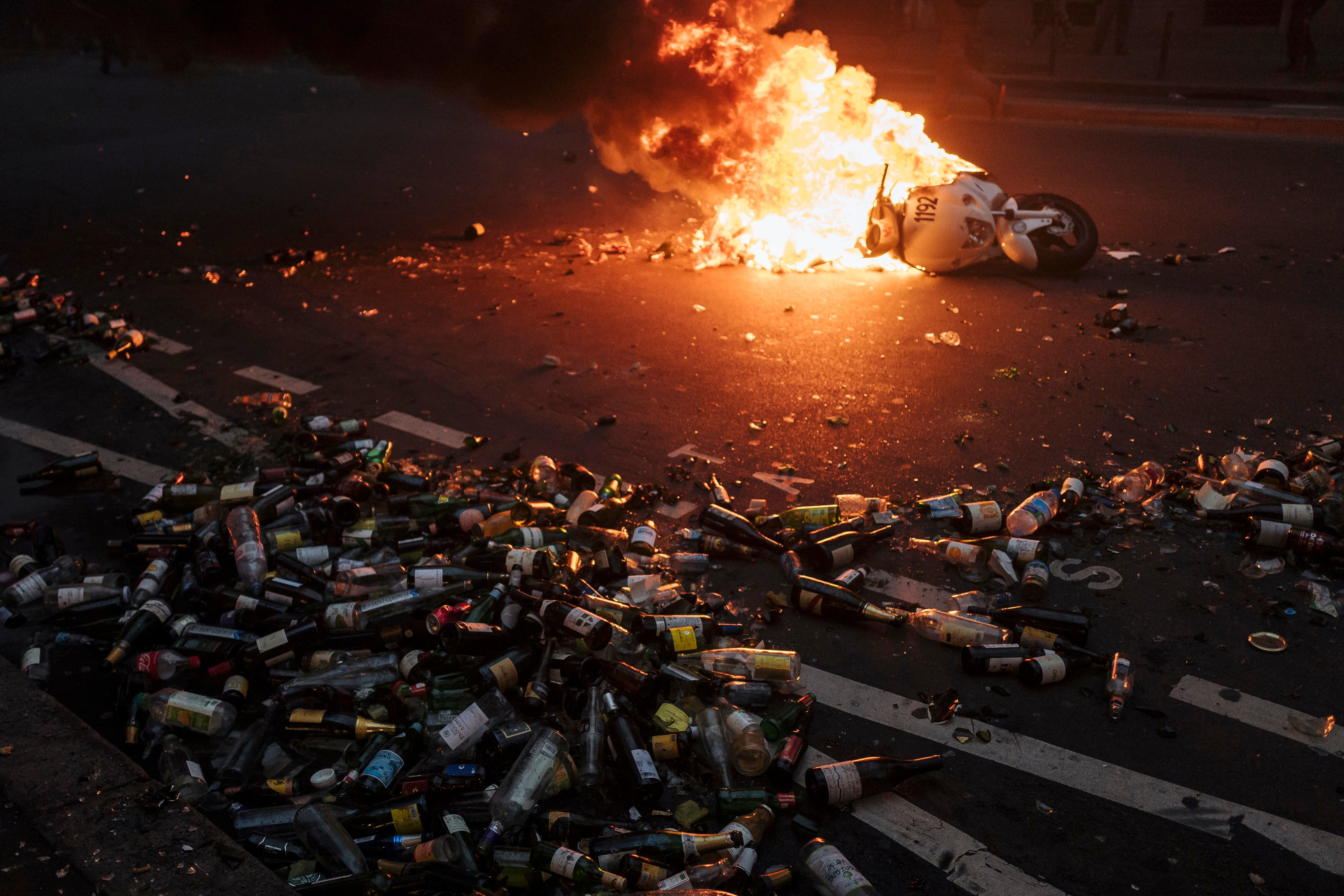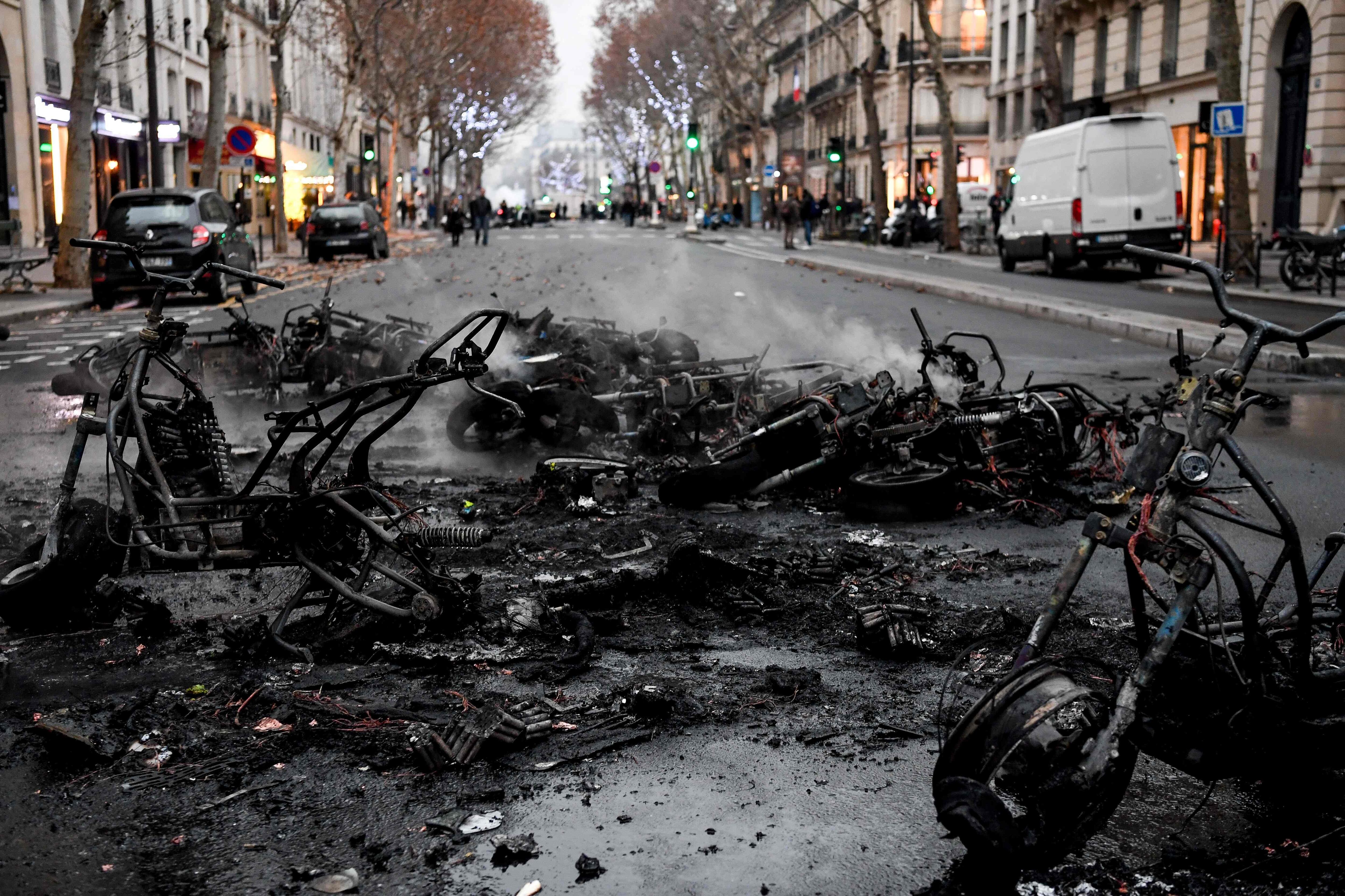 Uno de los restaurante en una barcaza sobre el Sena, anclada cerca del Museo de Orsay, fue incendiado, al igual que varias motos y monopatines de alquiler y un auto en el bulevar de Saint-Germain, observaron periodistas.