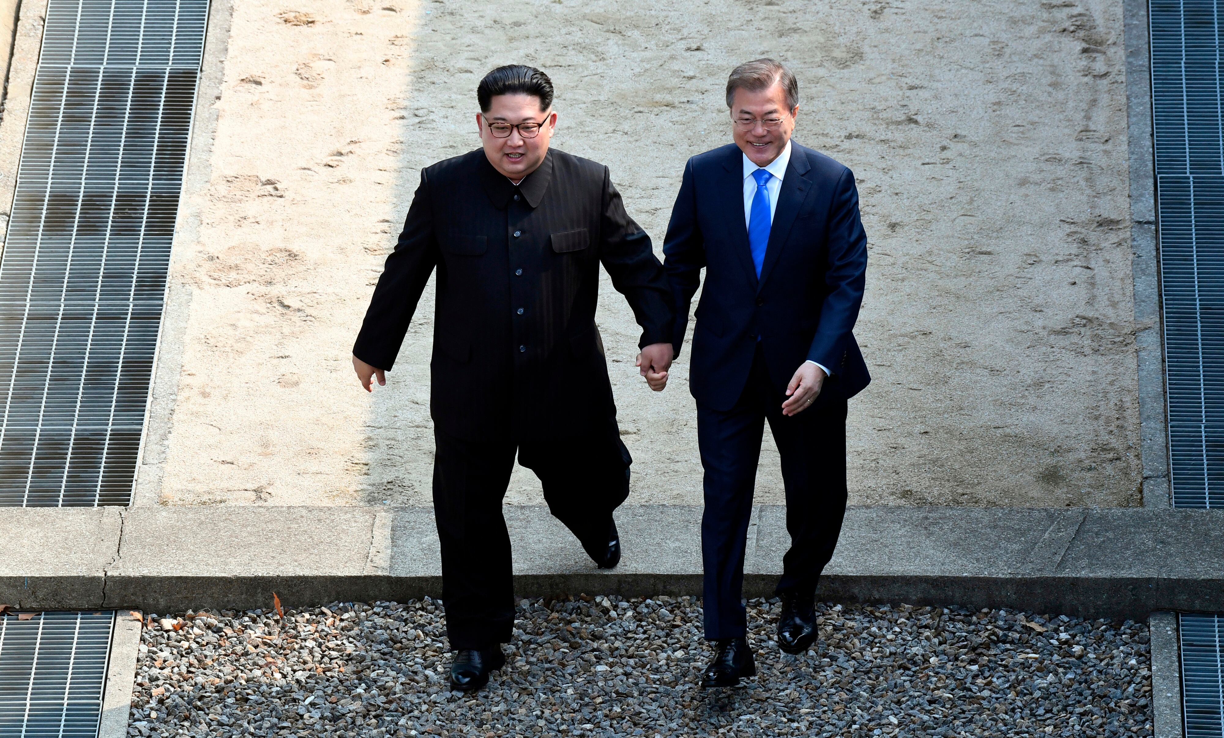 Fue así como después de un prolongado apretón de manos en la línea que demarca la frontera, Moon, con una sonrisa deslumbrante, invitó a Kim a cruzar hacia Corea del Sur. Ambos posaron para la prensa para inmortalizar el momento en el que Kim se convertía en el primer líder norcoreano en cruzar al Sur desde el fin de la guerra en 1953.
