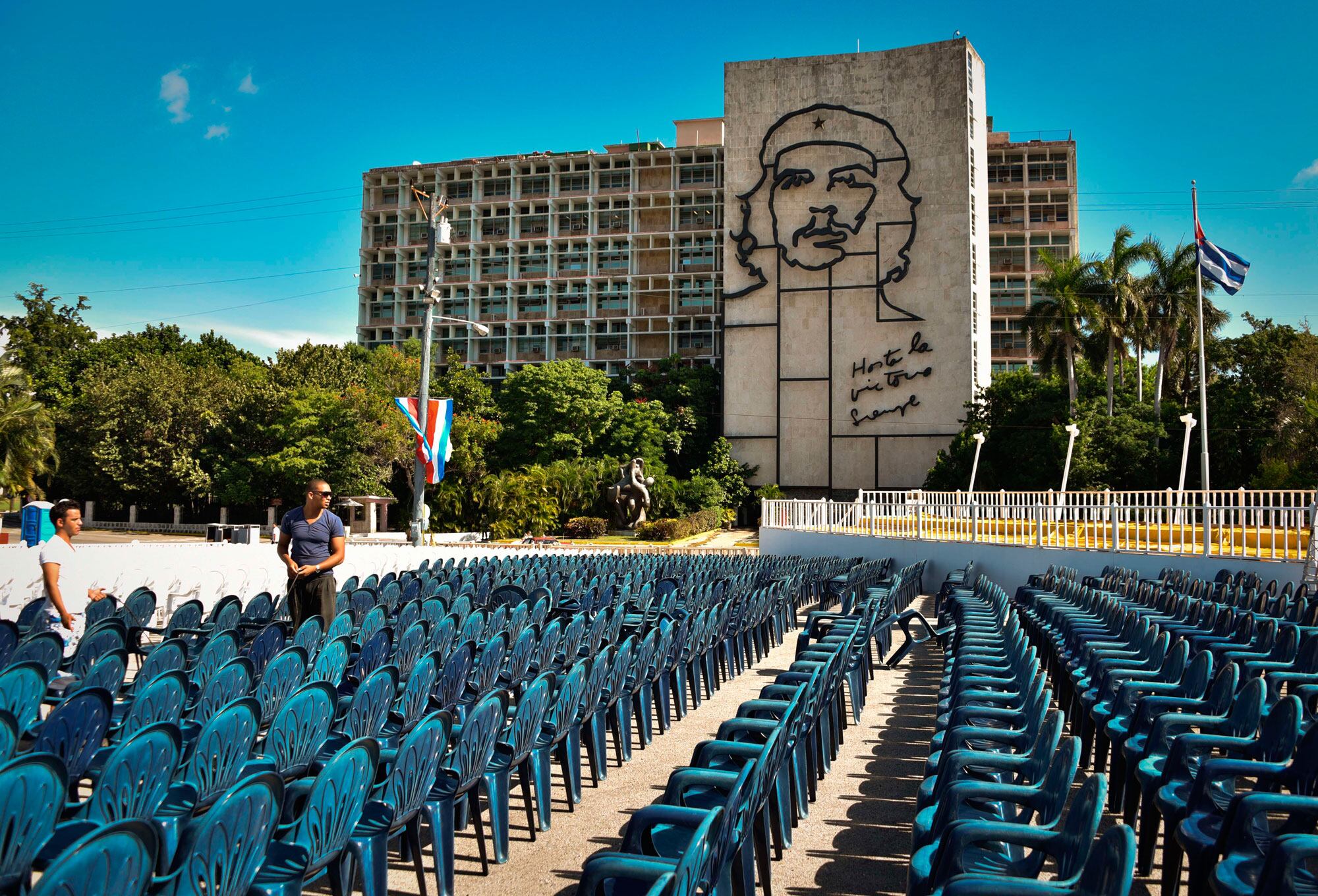 En la icónica plaza de la Revolución, el símbolo más preciado del Gobierno cubano, todo era actividad para poner a punto el andamiaje que acogerá la misa colectiva que el Papa dará el domingo ante alrededor de un millón de personas.