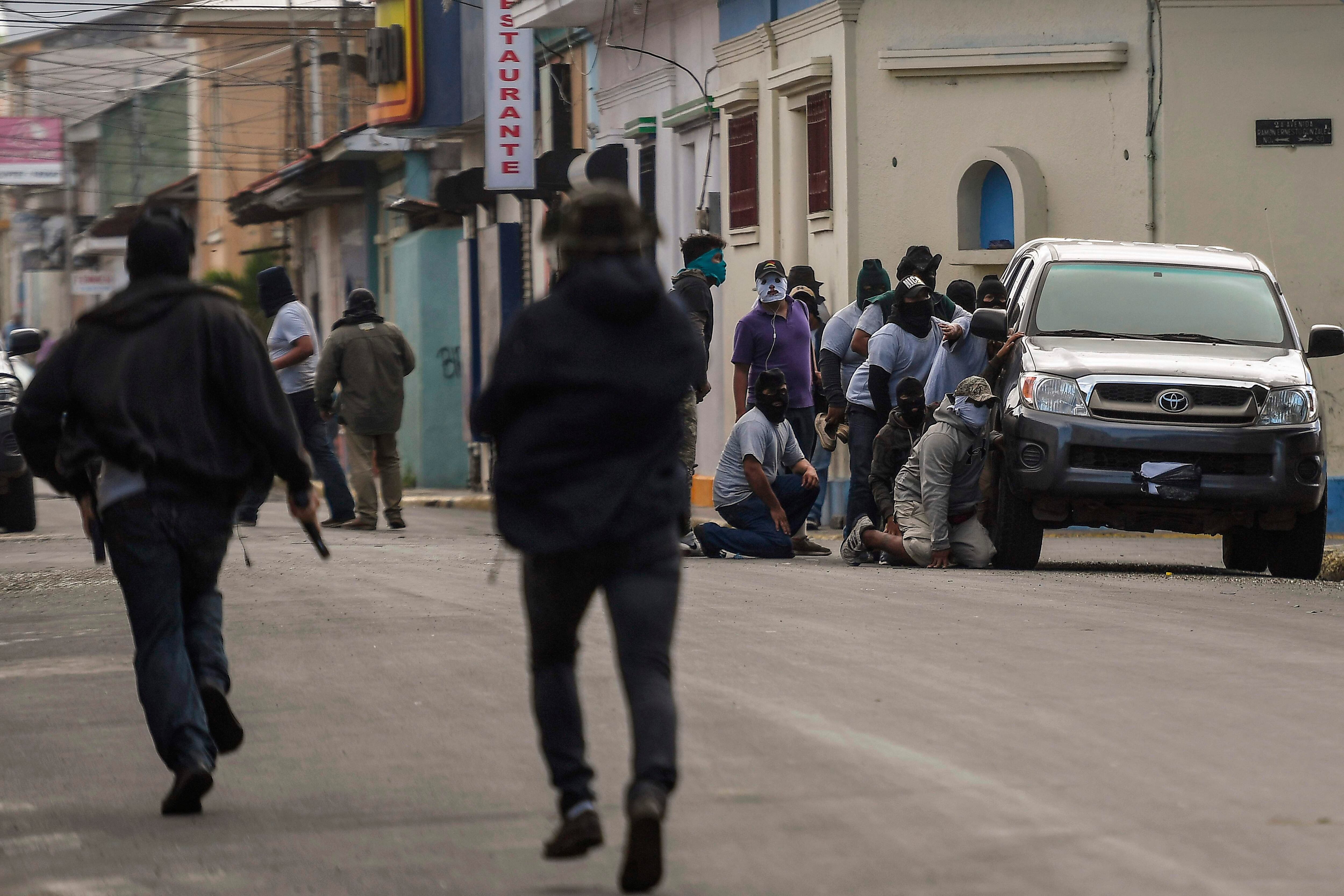 En las redes sociales circulan videos de personas armadas con fusiles AK-47, Dragunov, M-16 y hasta ametralladoras emplazadas sobre las camionetas en las que se desplazan esos grupos, hombres vestidos de civil y encapuchados.