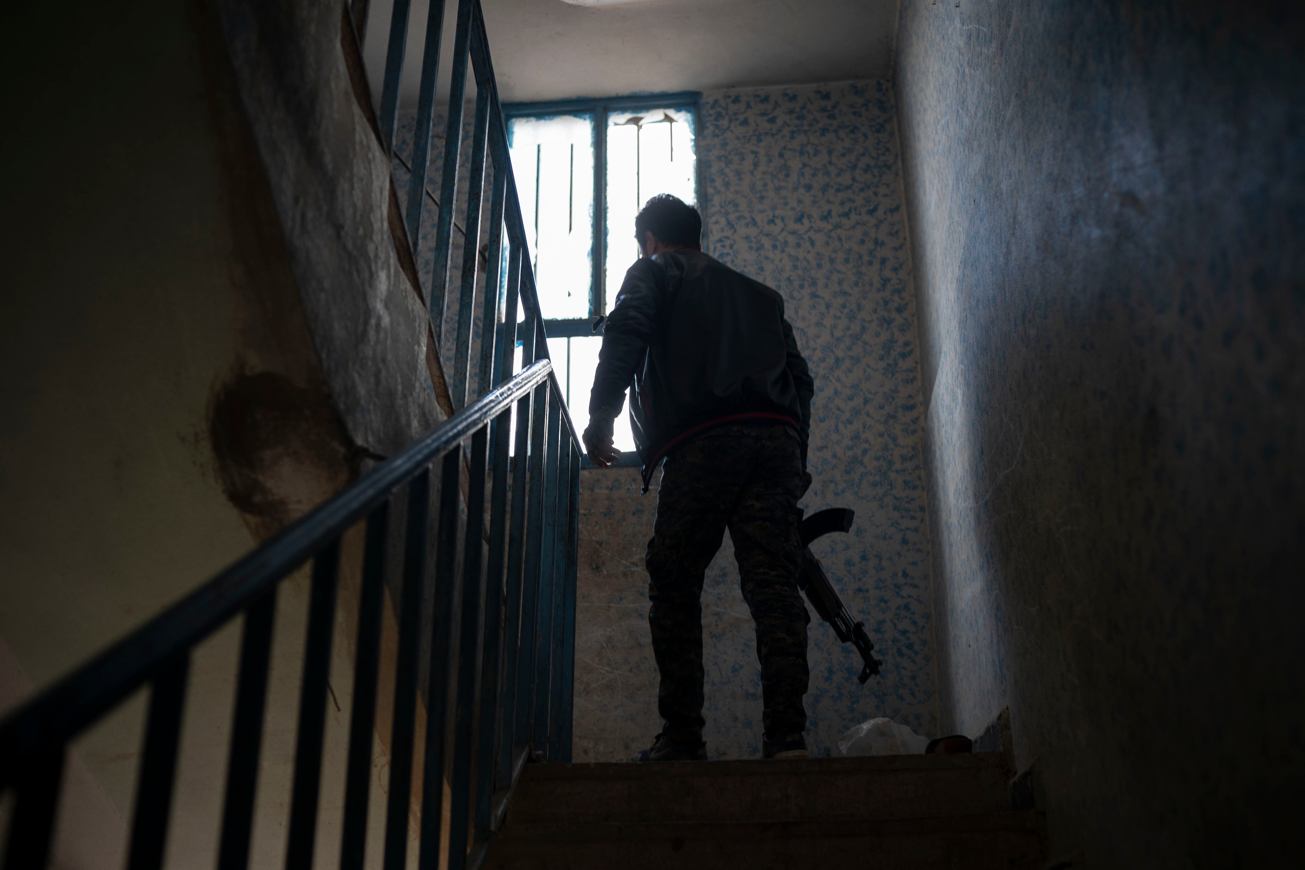 Omar Oil Field, Siria. Unos pocos yihadistas defendían este domingo con obstinación lo poco que queda del “califato” del Estado Islámico (EI), atrincherados en un reducido sector en el este de Siria en donde impiden a los civiles huir de la ofensiva de las fuerzas kurdo-árabes apoyadas por la coalición internacional.