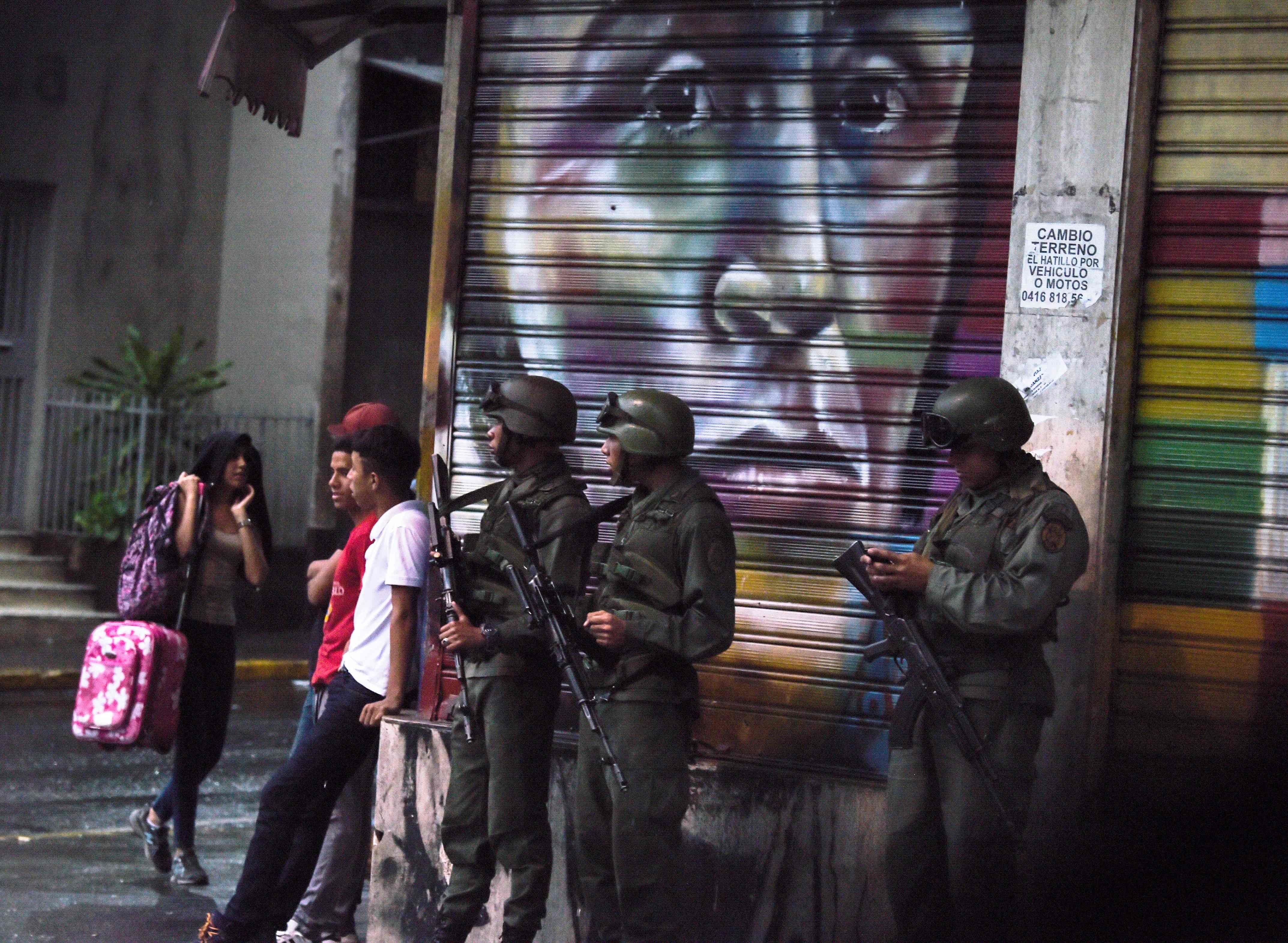 Marco Salgado, fotógrafo argentino radicado hace diez años en Venezuela, fue testigo del incidente y logró captar la imagen de un militar con la cara ensangrentada. Uno de los siete que resultó heridos, según el gobierno.