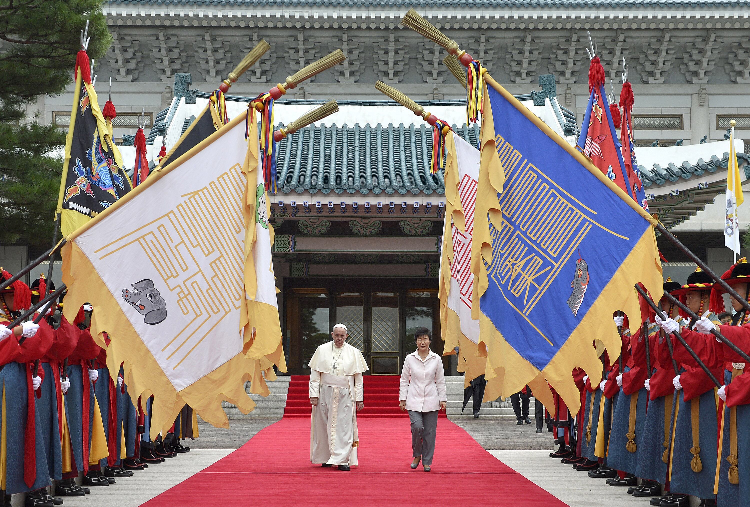El obispo de Roma le aseguró a su anfitriona, la presidenta surcoreana, que desde "lo más profundo de su corazón" esperaba la reconciliación de las dos Coreas, separadas desde 1953.