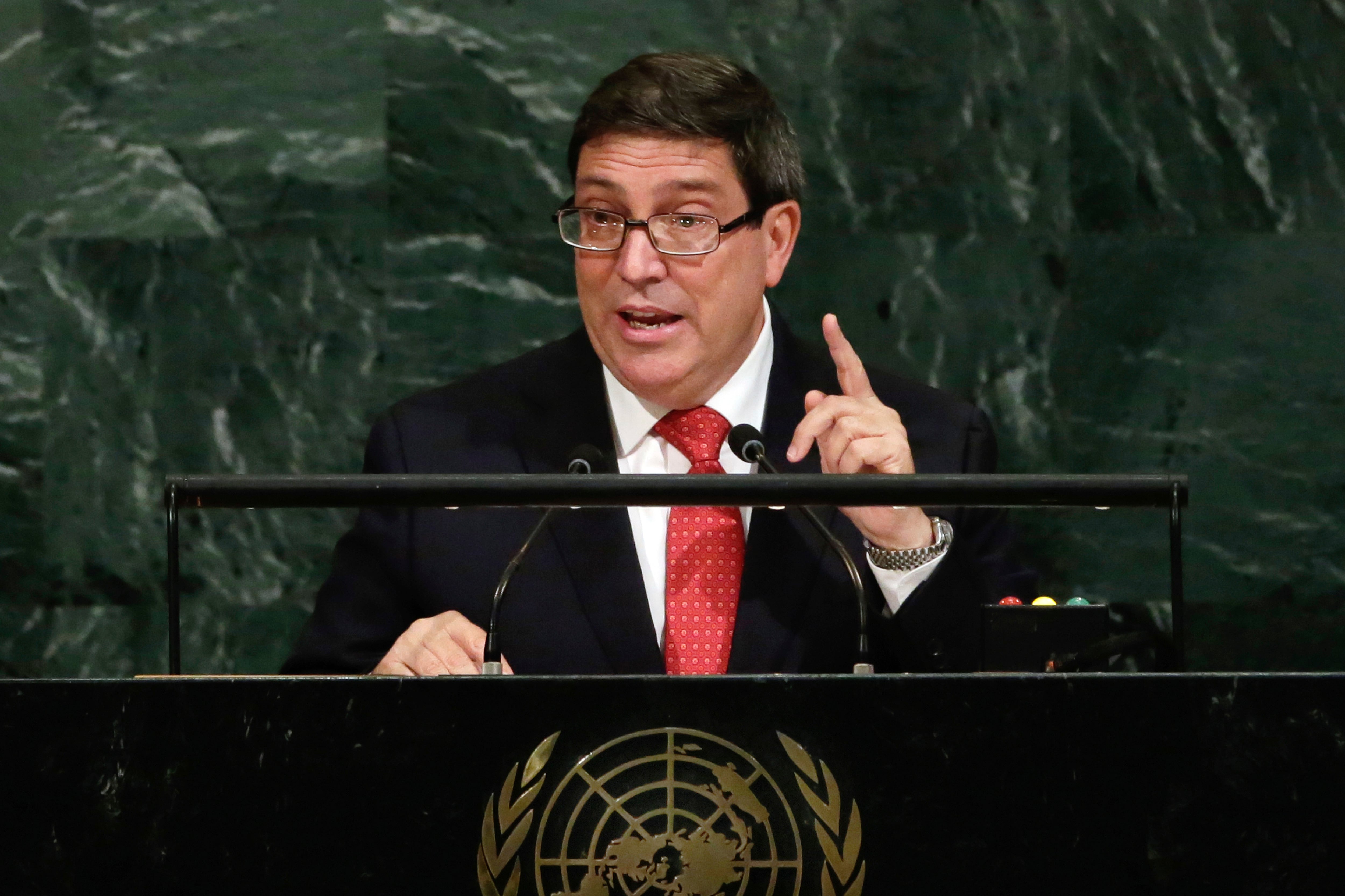 "Cuba jamás ha perpetrado ni perpetrará acciones de esta naturaleza, ni ha permitido ni permitirá que su territorio sea utilizado por terceros con ese propósito", dijo en la Asamblea General el canciller cubano Bruno Rodríguez.