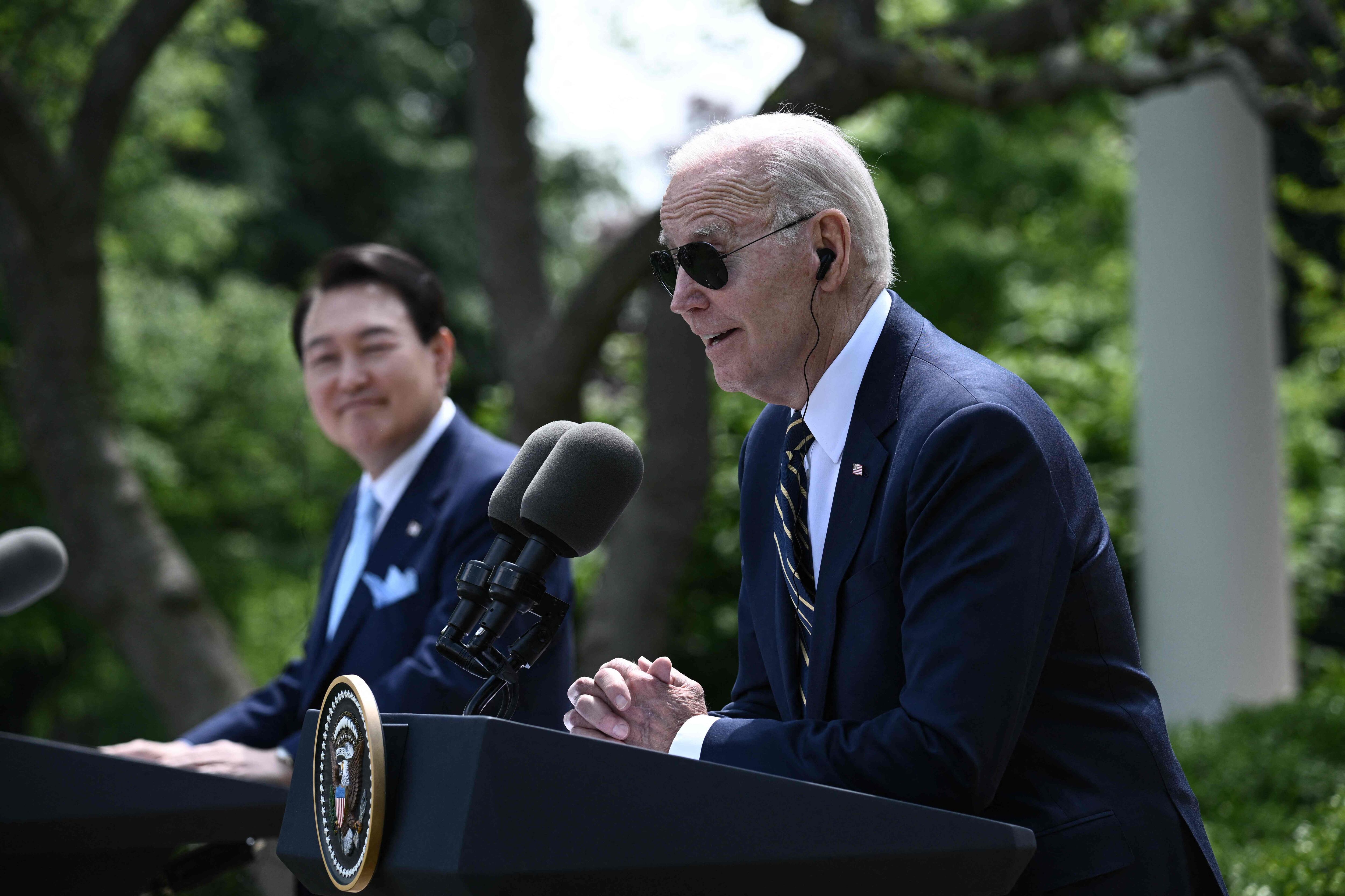 En una rueda de prensa posterior a una reunión en la Casa Blanca, ambos dirigentes multiplicaron las advertencias contra el vecino del norte, e hicieron hincapié en sus medios de disuasión y su "alianza inquebrantable", forjada "en tiempos de guerra y que prosperó en tiempos de paz", según Biden.
