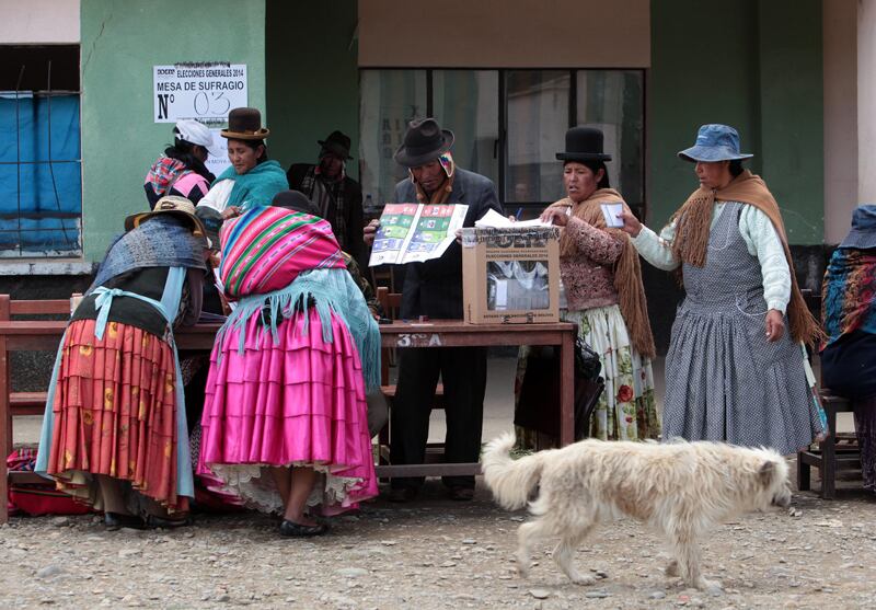 Indígenas aimaras se presentaron ayer a depositar su voto e las urnas en la localidad de Patamanta, departamento de La Paz, durante las elecciones generales en Bolivia. | EFE (Martin Alipaz)