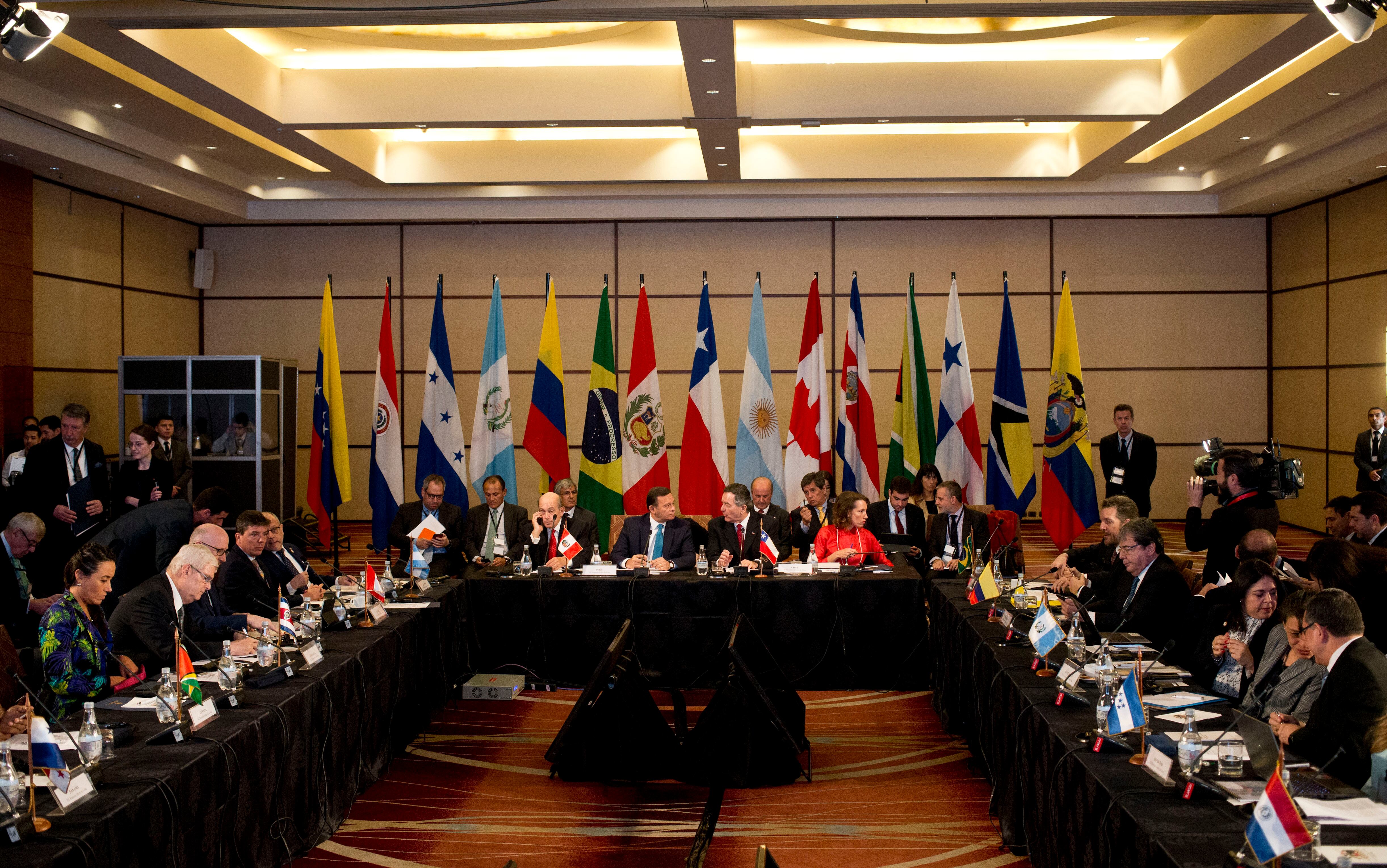 La declaración fue firmada por los gobiernos de Argentina, Brasil, Canadá, Chile, Colombia, Costa Rica, Guatemala, Honduras, Panamá, Paraguay y Perú. Guyana y Santa Lucía, miembros también del Grupo y cuyos representantes participaron de la reunión, no aparecen mencionados en la declaración, leída por el canciller chileno, Roberto Ampuero, ante la prensa, sin aceptar preguntas.