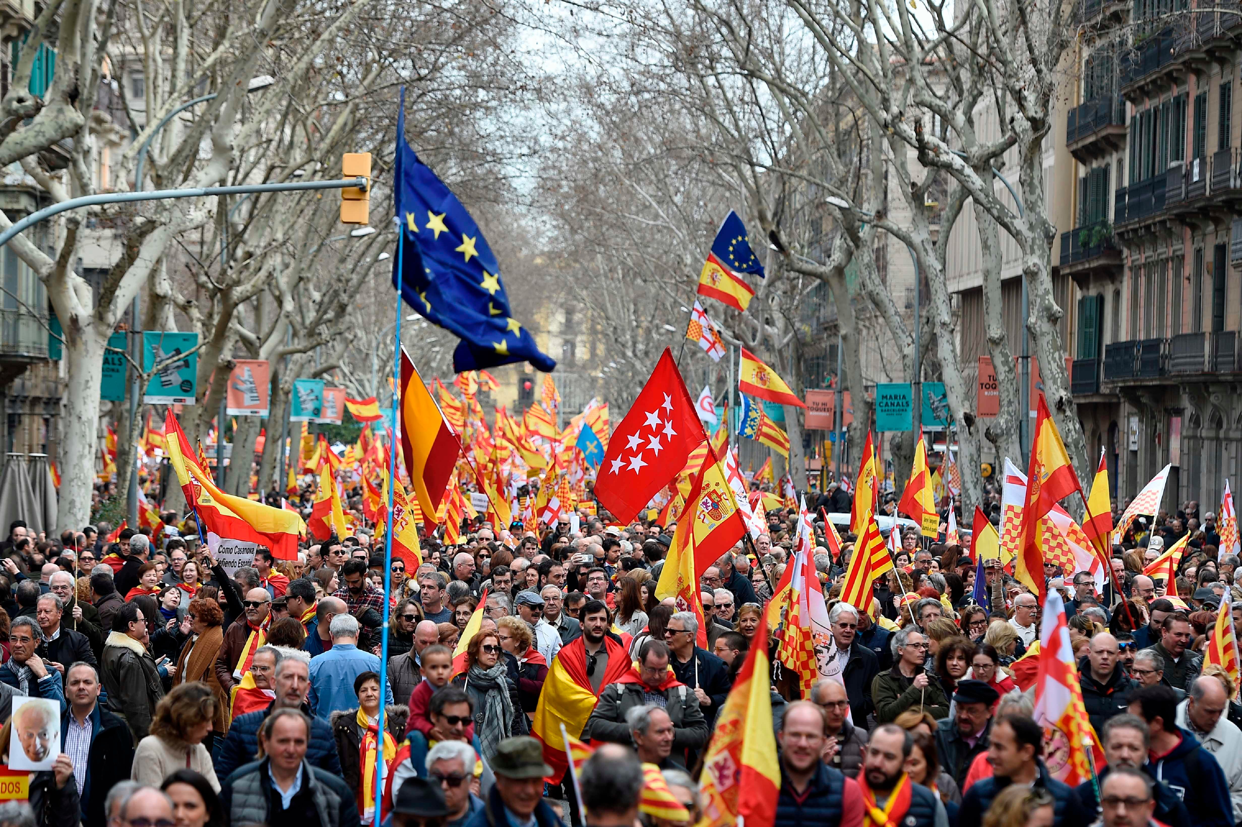 Barcelona. Miles de personas salieron a las calles el domingo para unirse a una manifestación en Barcelona convocada por un grupo de base que utiliza el humor para mofarse del intento separatista de Cataluña.