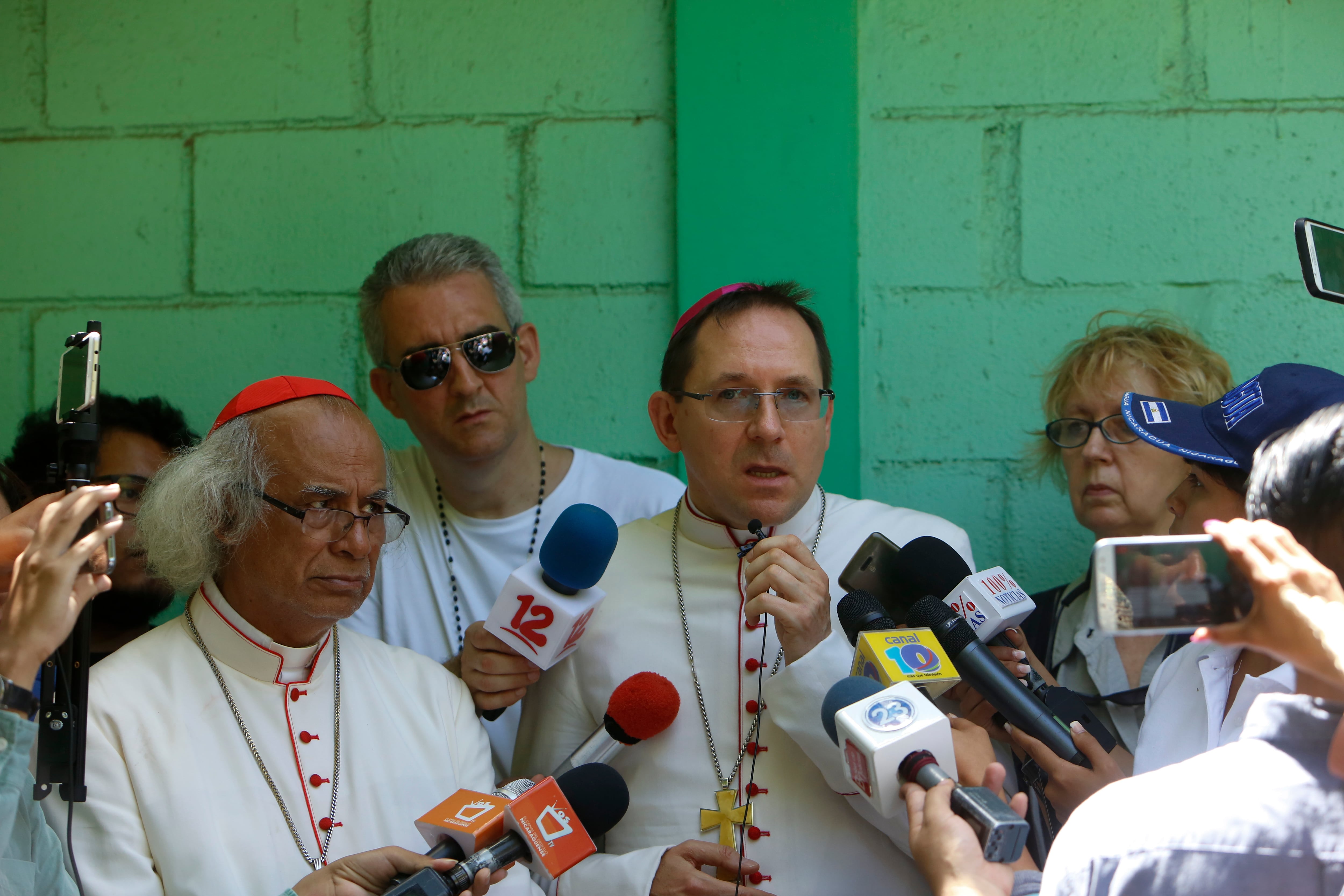 “Quiero reiterar el empeño de la iglesia local y la Santa Sede por su pleno apoyo al diálogo nacional (...) hay que tenerlo con vida”, afirmó el nuncio apostólico Stanislaw Waldemar Sommertag en la Catedral de Managua, donde fueron llevados los jóvenes tras ser liberados.