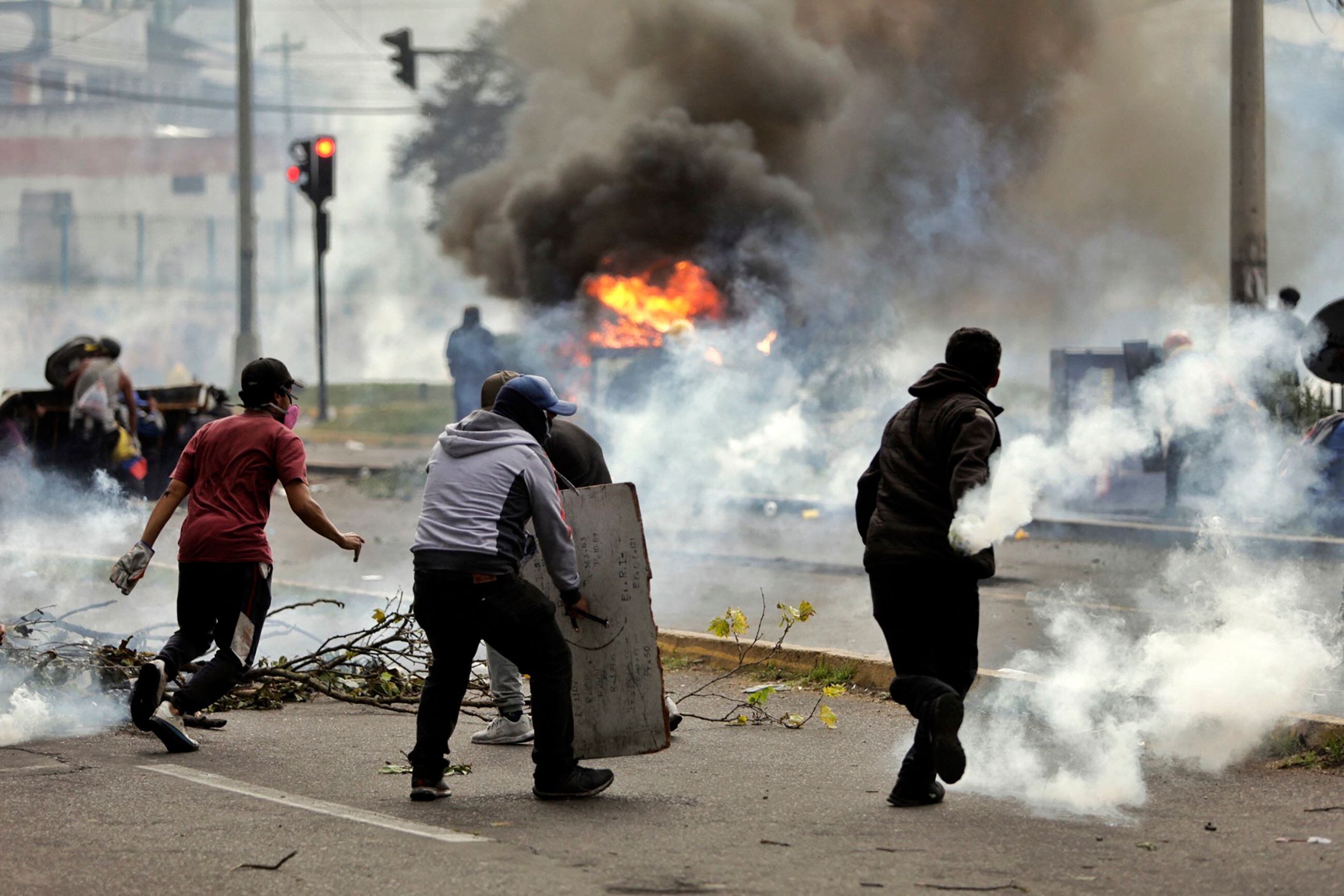 Unos 14.000 indígenas protestan en el país, pero el foco principal está en la capital ecuatoriana, de tres millones de habitantes, la cual despertó militarizada y bajo la humareda que dejaron los destrozos nocturnos. Barricadas con troncos y neumáticos quemados, hogueras, vidrios rotos. Al paso de los manifestantes los comercios cierran. “La gente que produce estamos mal (...) los mercados no están pagando un precio justo”, dijo el indígena Carlos Pilla, de la provincia de Tungurahua (sur).