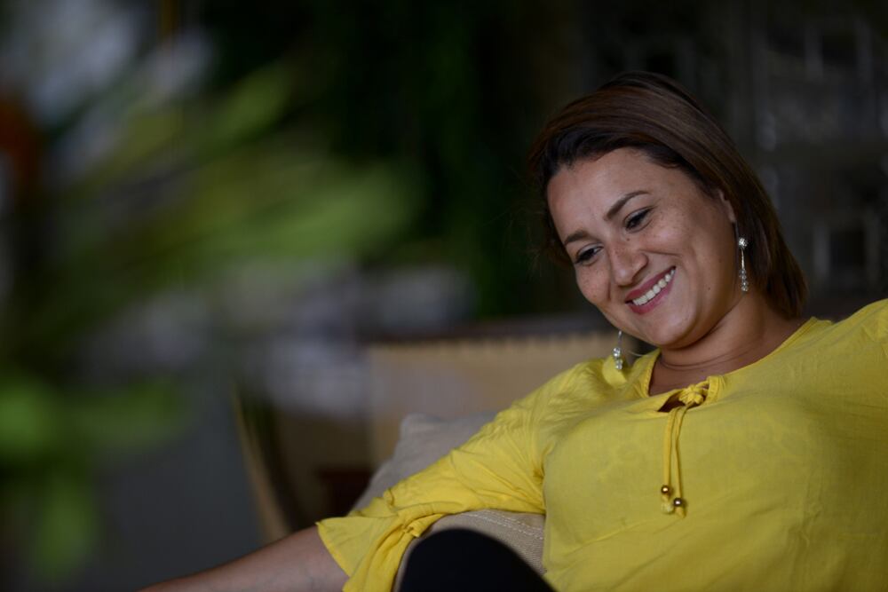 Tímida, sale de un cuarto interior de la casa hacia la sala. Lleva puesta una blusa del color del sol, muy alejada de sus antiguos uniformes camuflados. Su rostro oculta muy bien las heridas de un pasado doloroso; refleja luz. El brillo parece emanar de adentro, de la reconciliación interior que encontró cuando logró salir del infierno, cuando escapó de la guerrilla colombiana por segunda vez y perdonó para contarlo.