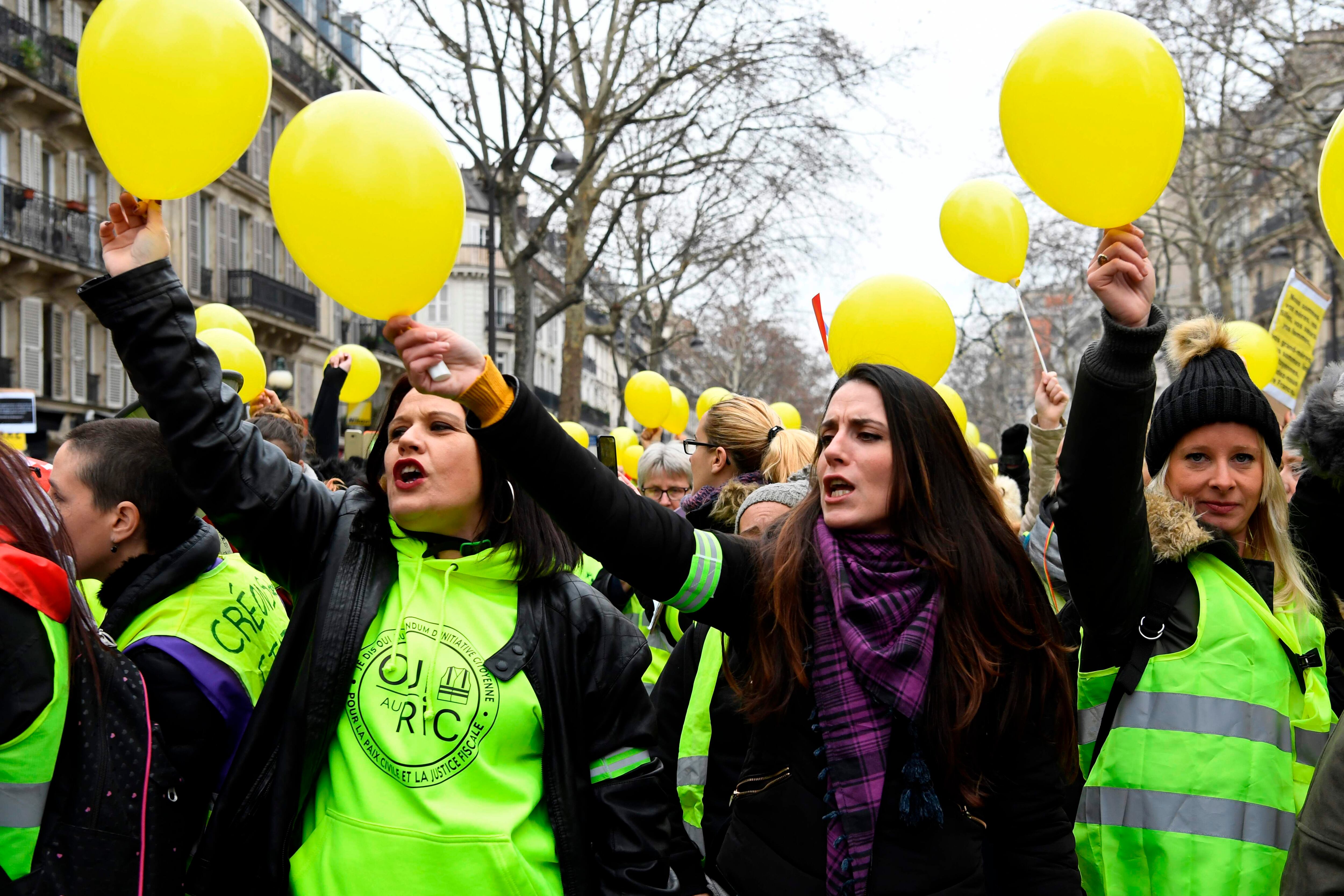París. Centenares de mujeres “chalecos amarillos” se reunieron este domingo en varias ciudades de Francia para dar una imagen pacífica del movimiento que desde hace ocho semanas organiza protestas en las ciudades y carreteras del país, y que el sábado terminaron en incidentes violentos.