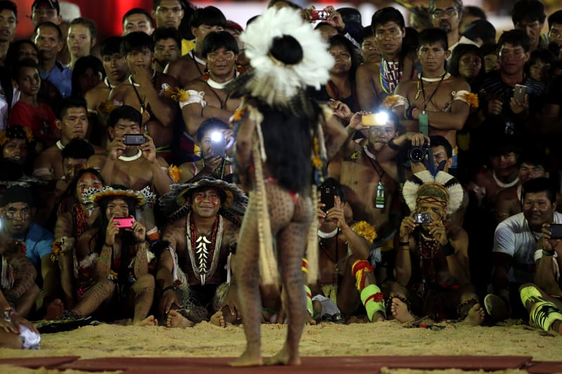 Los Juegos Mundiales de los Pueblos Indígenas, que asemejan una olimpiada, fueron inaugurados el 23 de octubre con una antorcha de fuego sagrado, el himno de Brasil cantado en guaraní y la presencia de la mandataria Dilma Rousseff.
