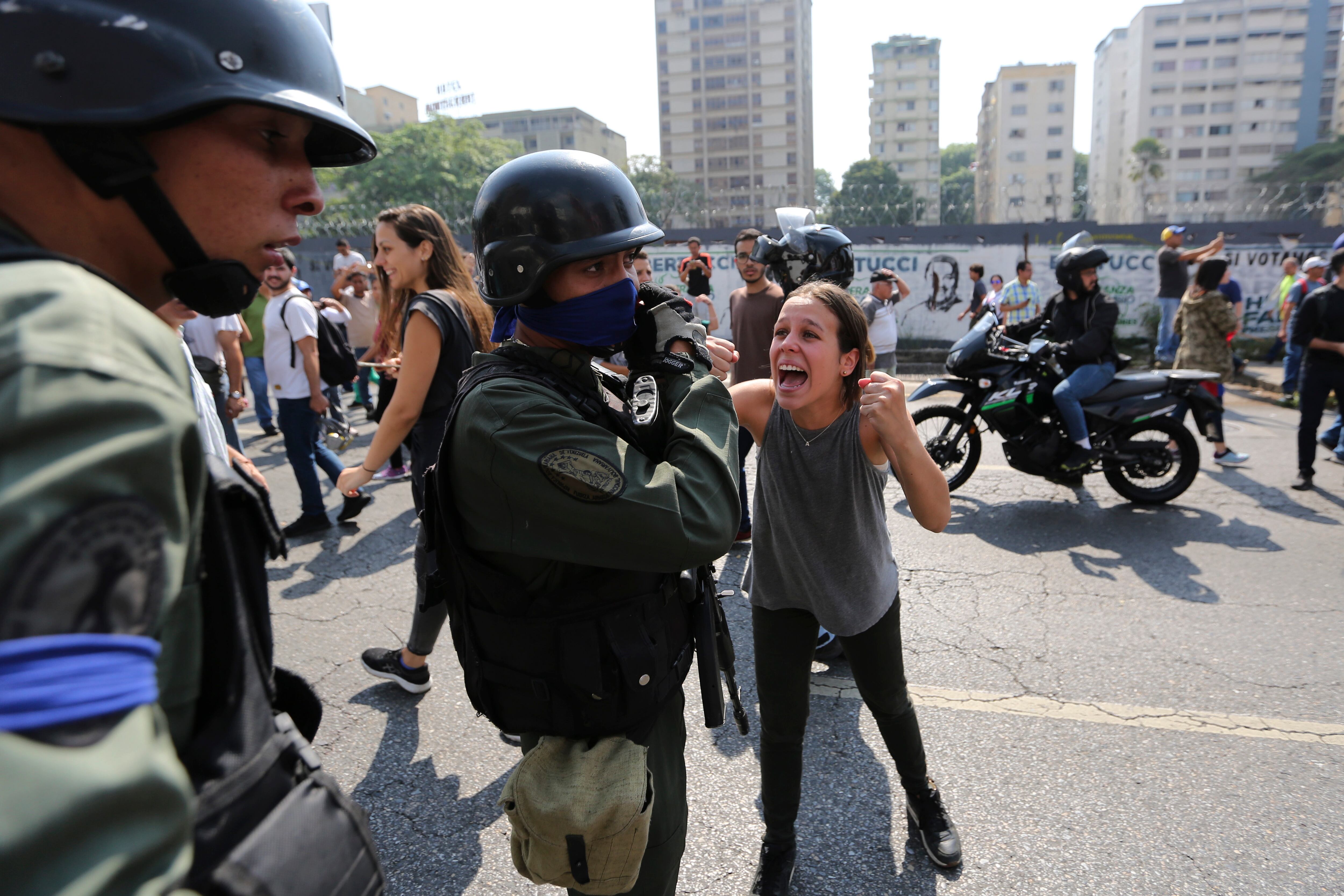 Los insurrectos estaban rodeados por miles de manifestantes que llegaban a darles apoyo a la base aérea de La Carlota, en Caracas, donde en la madrugada Guaidó divulgó videos en redes sociales en los que aseguró contar con respaldo de “valientes soldados” y llamó a protestar en las calles para exigir la salida del poder de Maduro.