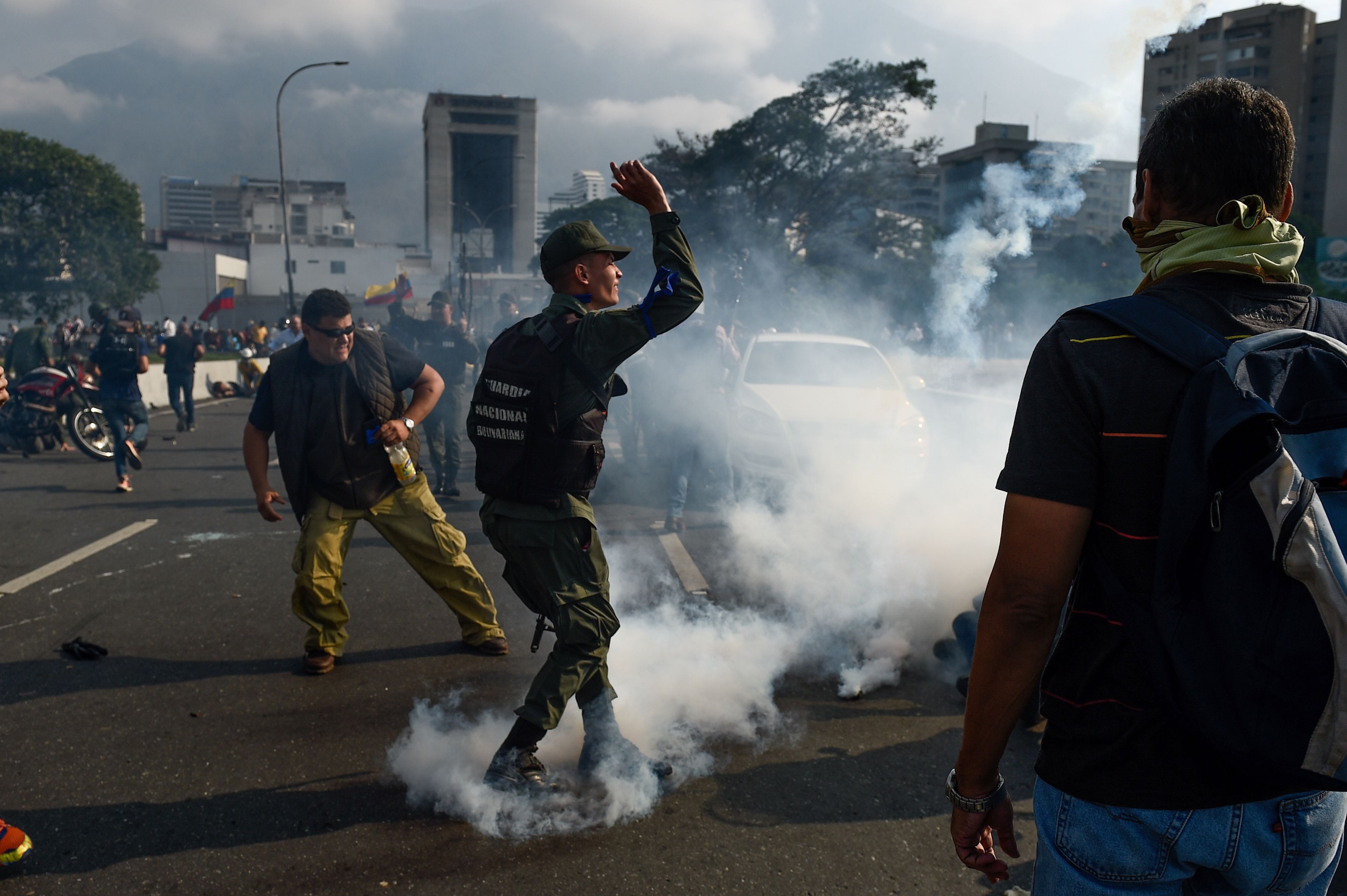 Desde el interior de la base, uniformados leales a Maduro lanzaron bombas lacrimógenas contra opositores que atendieron el llamado de Guaidó a tomar las calles para apoyar el “cese definitivo de la usurpación”.