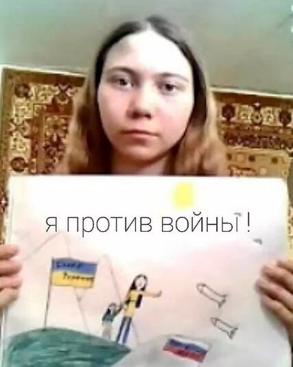 En abril del año pasado, Masha, alumna de sexto grado de la Escuela Número 9 en la ciudad de Yefremov, hizo un dibujo contra la guerra de Rusia en Ucrania para el curso de arte.