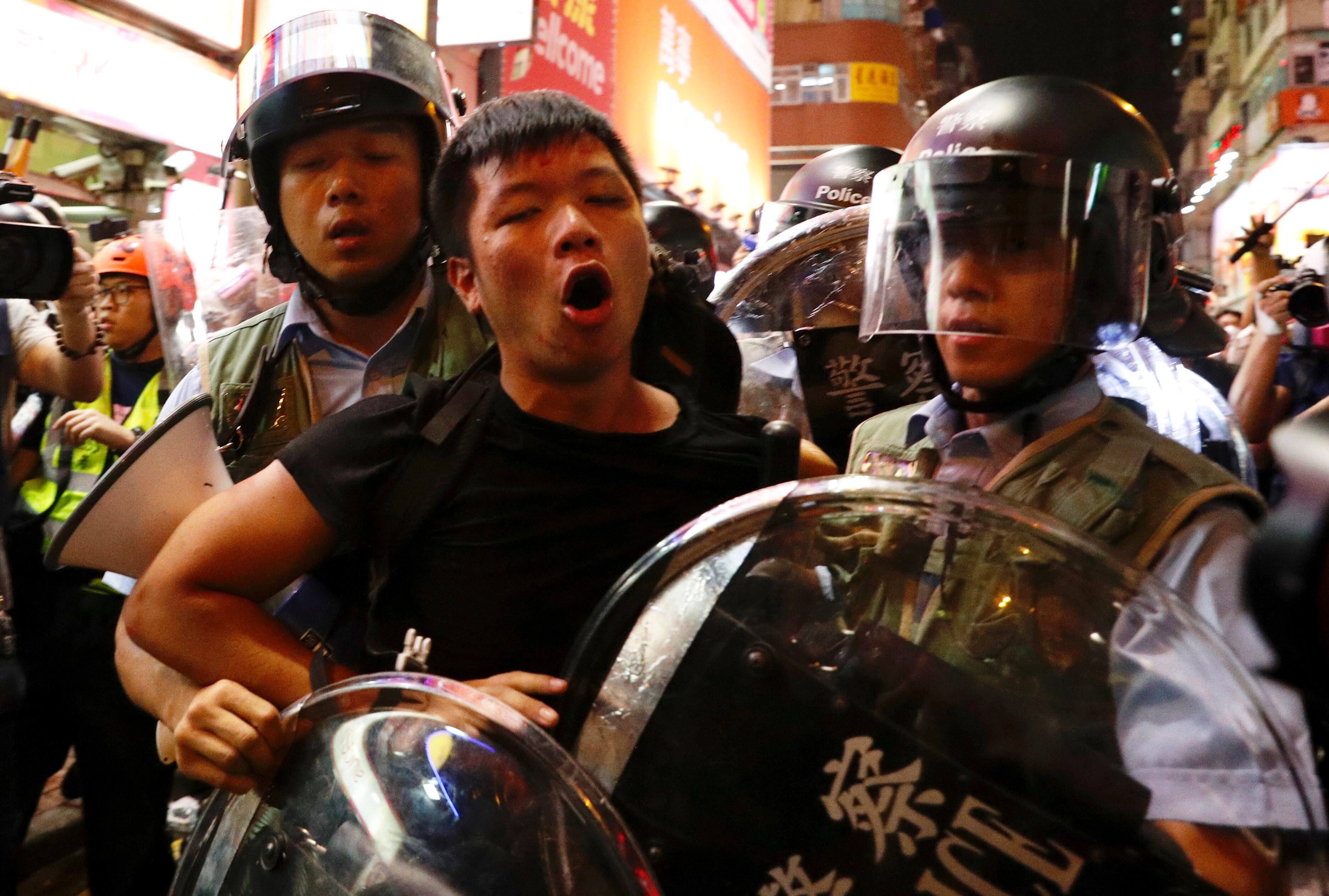 La Policía antidisturbios cargó contra los participantes de la protesta en el barrio de Mongkok, en el norte de la ciudad, después de un tenso enfrentamiento de 20 minutos con un grupo de unas 300 personas, la mayoría jóvenes enmascarados.