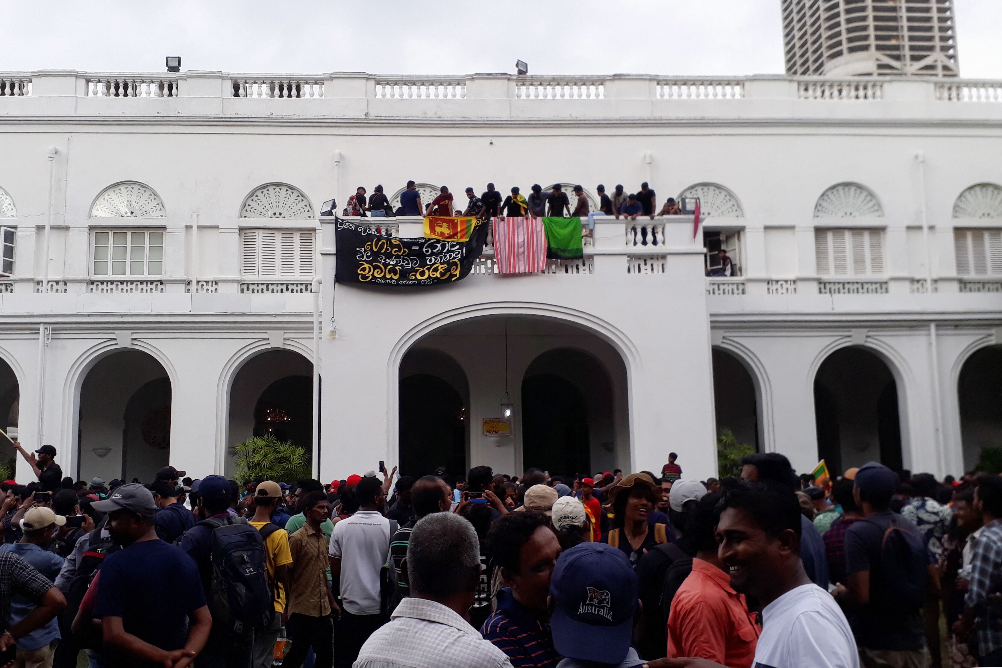 Y varios centenares forzaron la entrada del palacio presidencial y obligaron a Rajapaksa a abandonar precipitadamente el lugar.