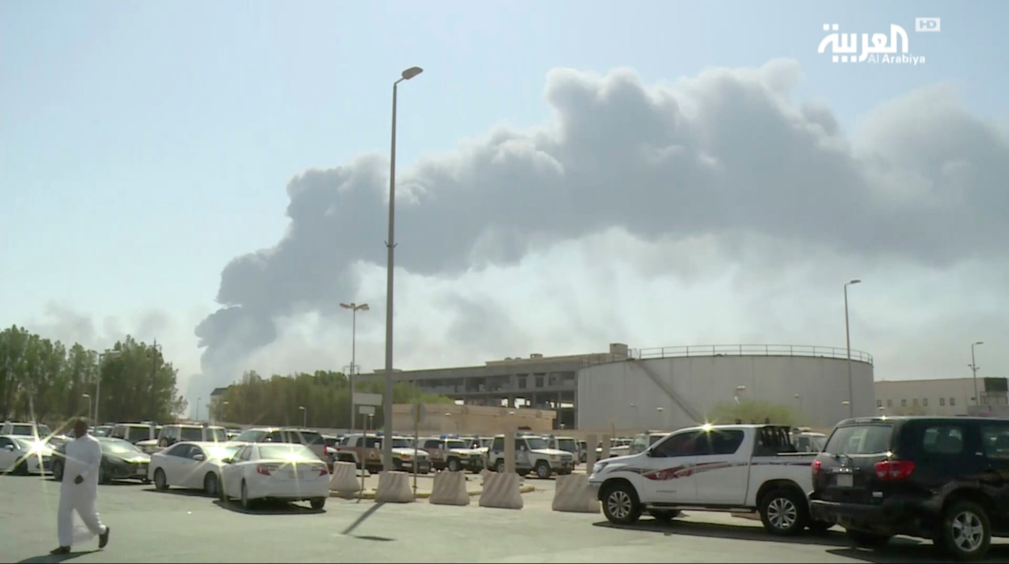 Imágenes de incendios causados por explosión de hasta 10 drones desplegados por rebeldes Houthis de Yemen (ya se han atribuido autoría), en instalaciones petroleras de la ciudad saudí de Abqaiq, y de Hijra Khurais. Ataque tuvo lugar a las 4 am hora saudí.pic.twitter.com/rpXwC4zocY