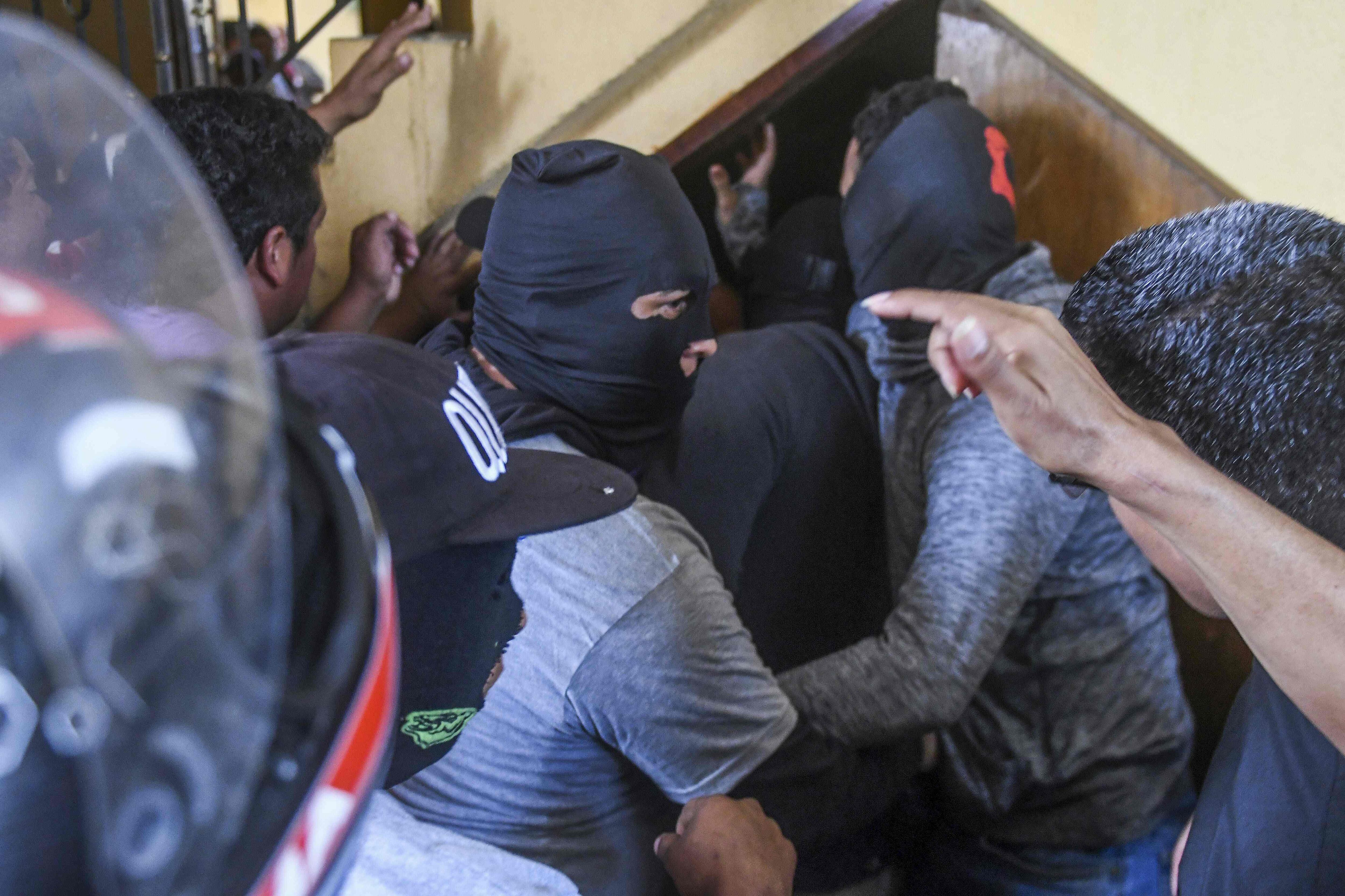 Minutos después entró un grupo de encapuchados -al menos tres con pistola o lanzamorteros-, forcejearon con los sacerdotes, algunos de los refugiados y se agudizó el caos.
