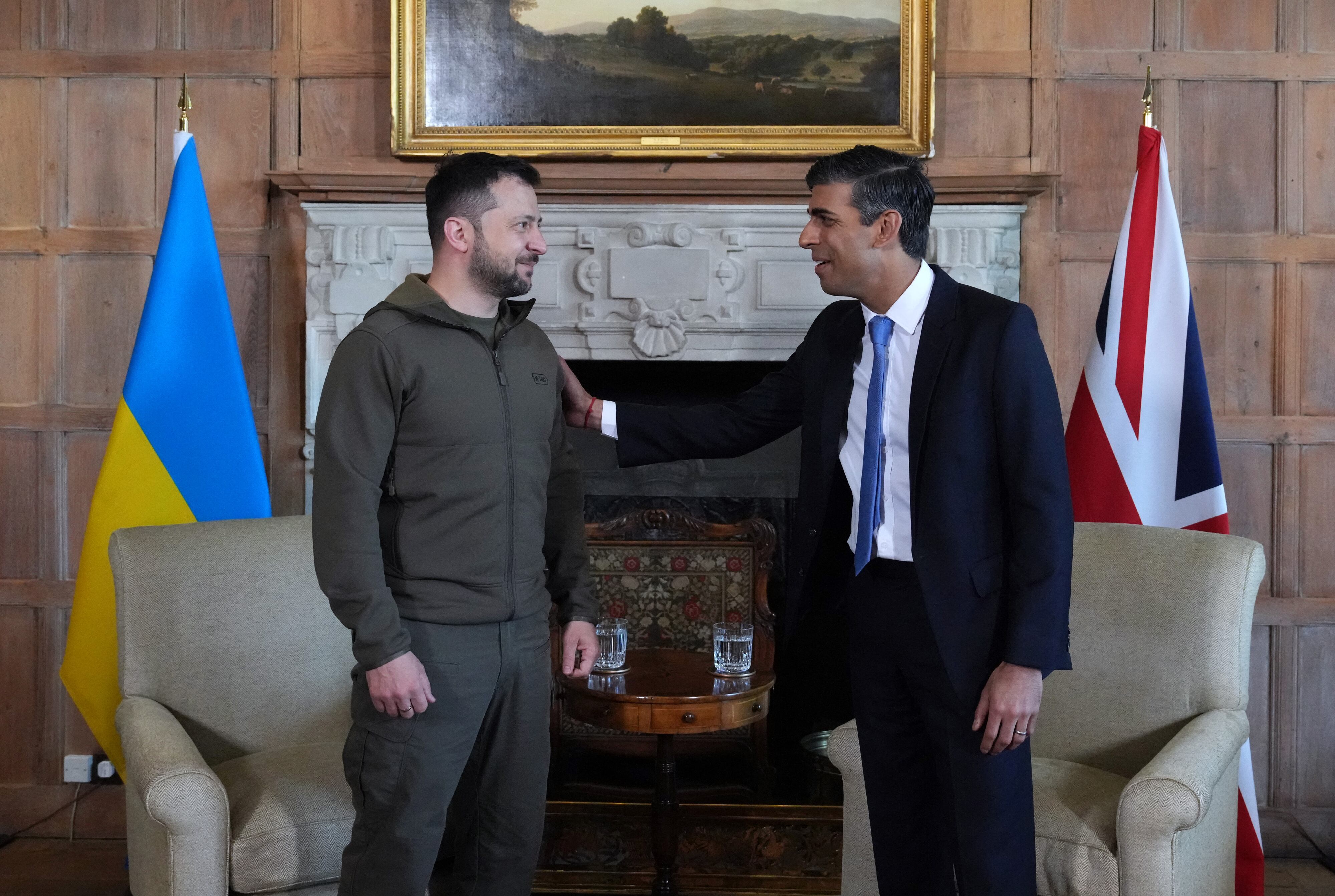 En el inicio de la reunión, Zelenski dio las gracias al Reino Unido por su apoyo a Ucrania desde la invasión rusa en febrero de 2022. "Estamos agradecidos de todo corazón; de parte de los ucranianos, de parte de nuestros soldados, gracias", dijo.