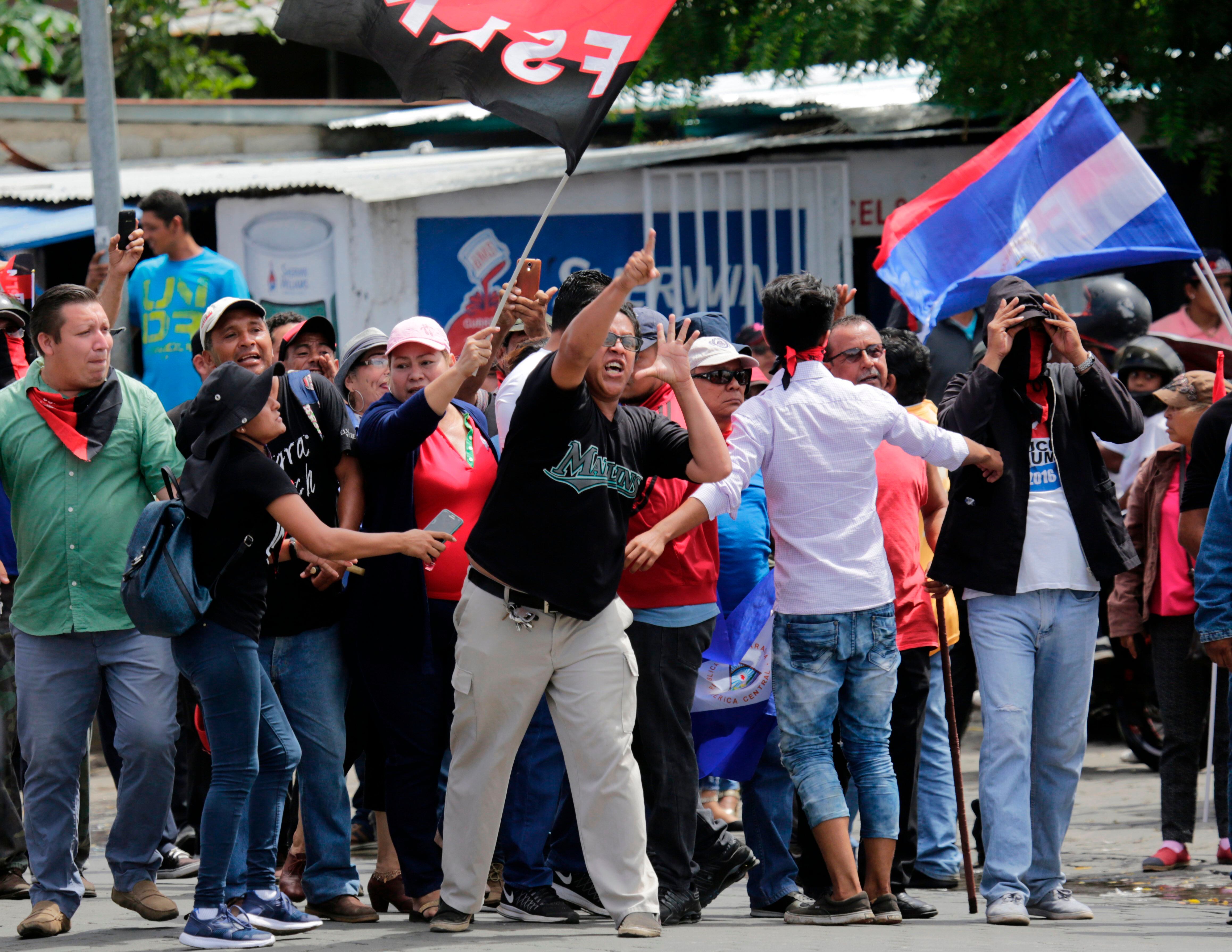 “Me hirieron con un balazo los paramilitares de Daniel Ortega”, dijo un manifestante de 41 años que resultó herido en un brazo y prefirió no revelar su nombre, mientras era atendido en una iglesia del barrio Las Américas, al este de la capital, donde ocurrió uno de los ataques.