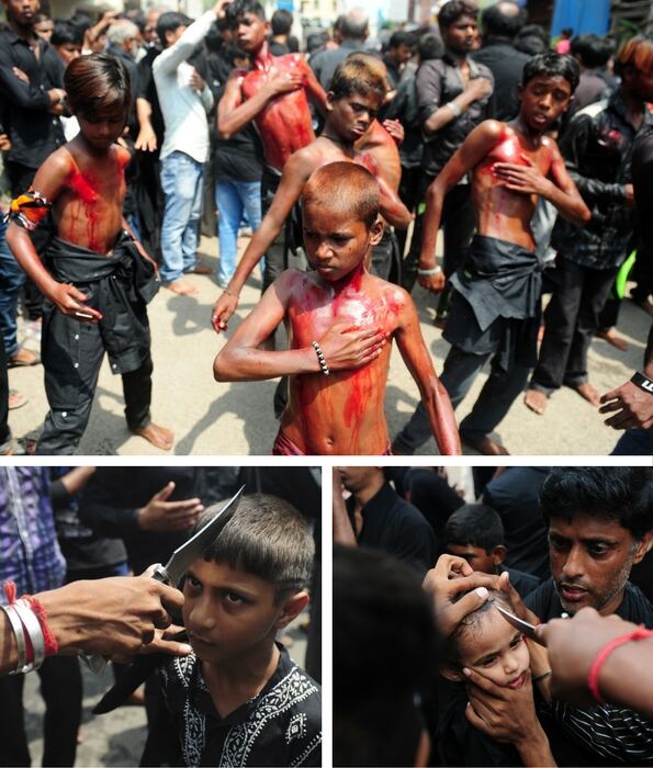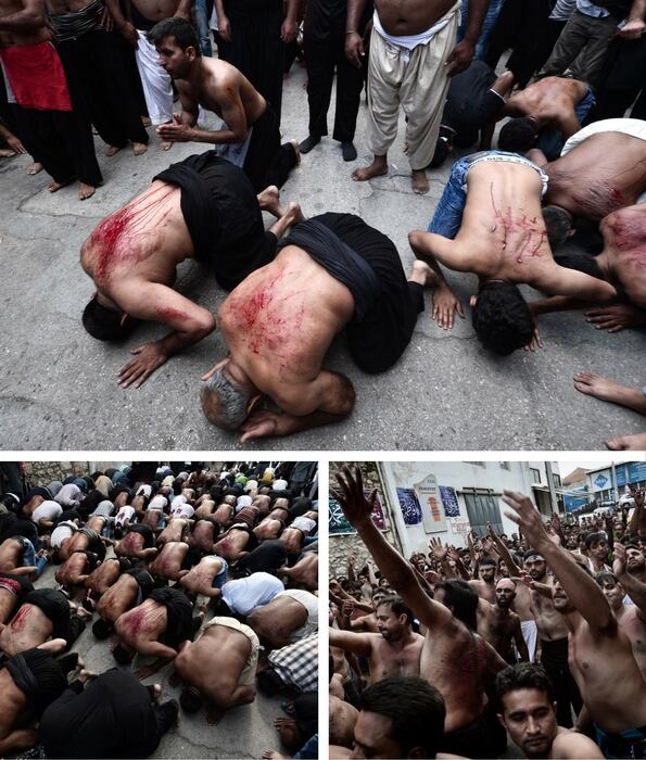 El mismo fervor se veía en otras ciudades del mundo, en particular en Teherán, donde miles de fieles desfilaron golpéandose la espalda con cadenas hasta sangrar.
