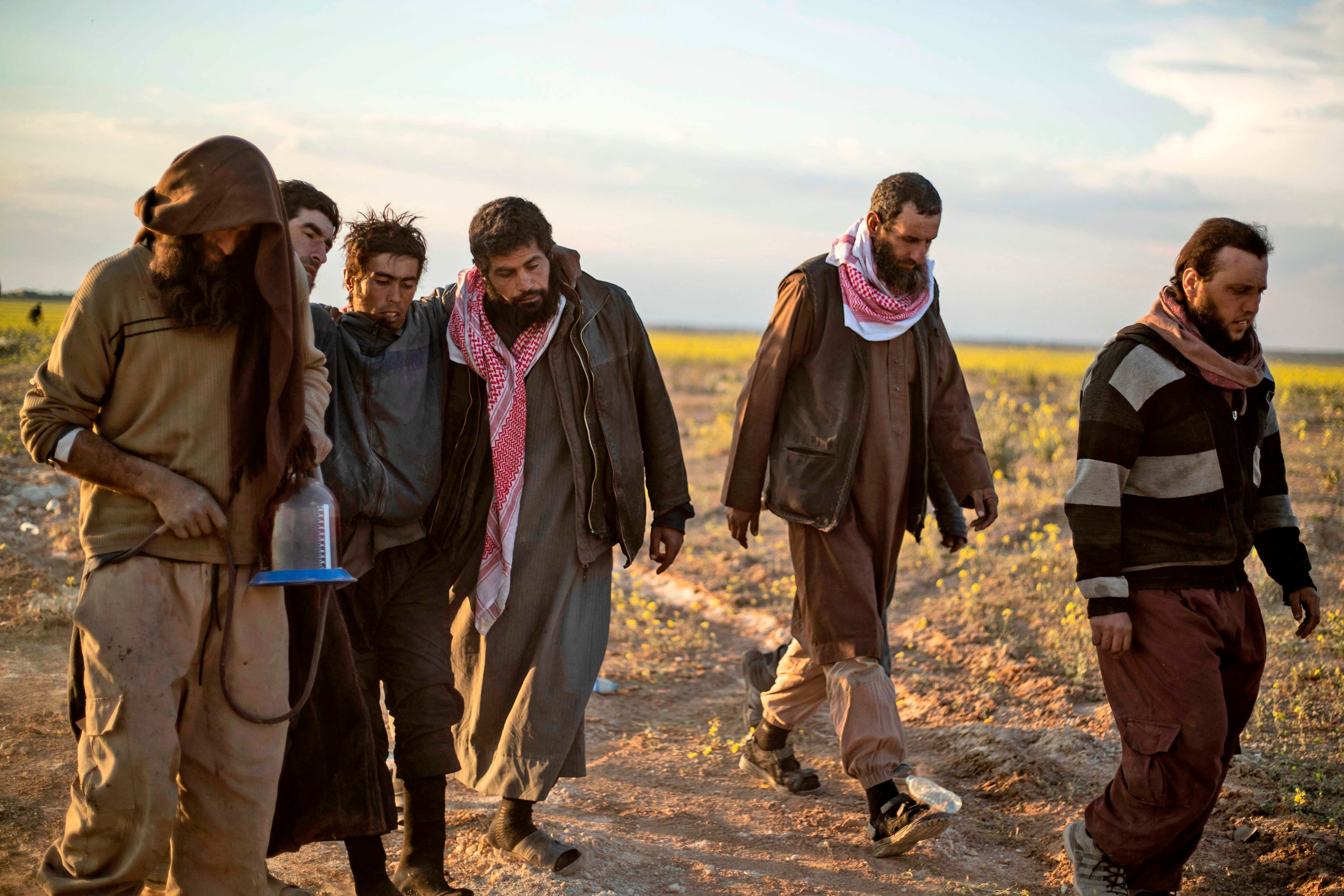 Miles de hombres, mujeres y niños, incluyendo numerosos heridos y cojos, huían de Baghuz, último bastión del EI, en la periferia de donde se encuentra el campamento, cerca de la frontera con Irak.