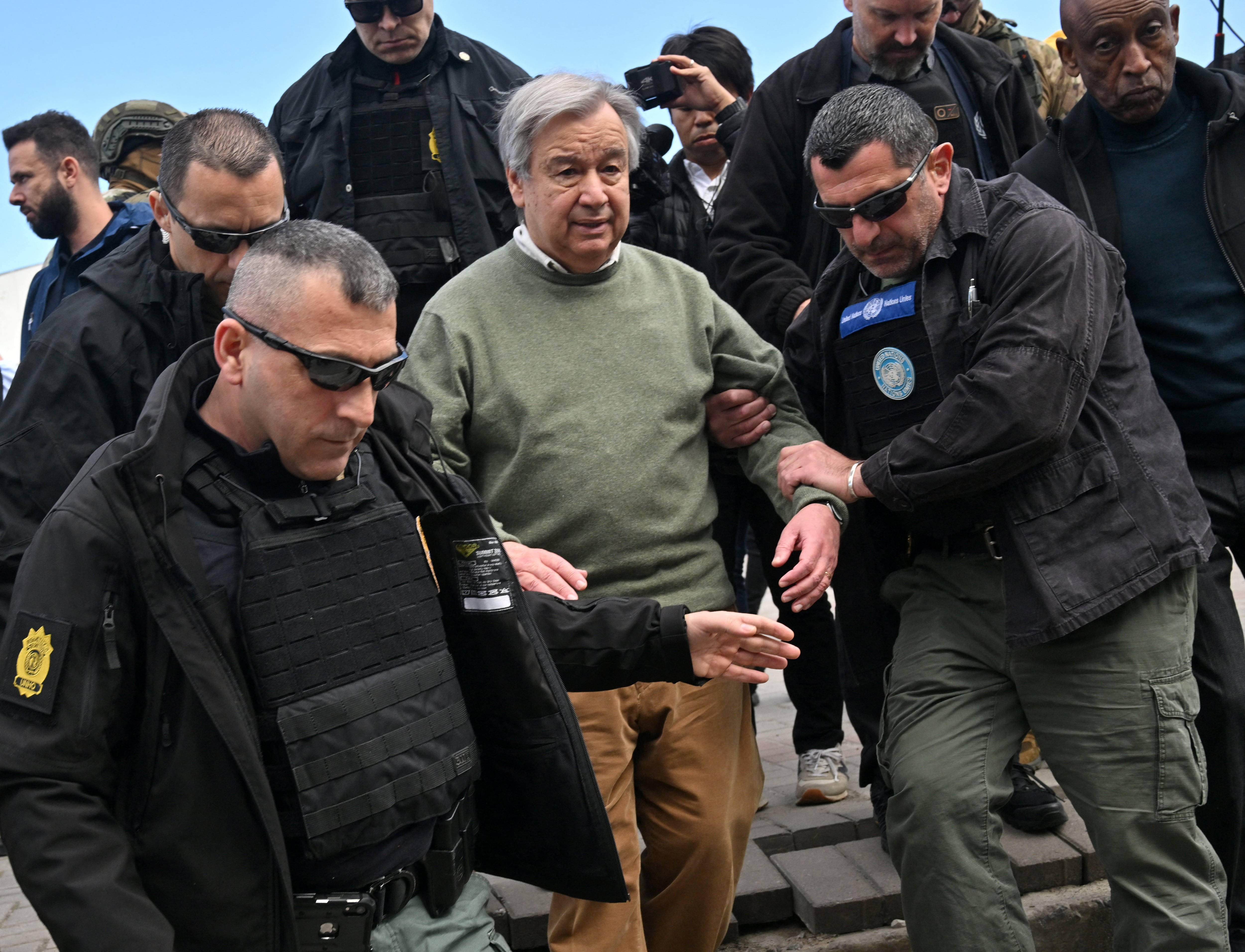 Guterres y su comitiva se sintieron “conmocionados” por la proximidad de los bombardeos rusos, aunque todos están “a salvo”, dijo un portavoz de la ONU.