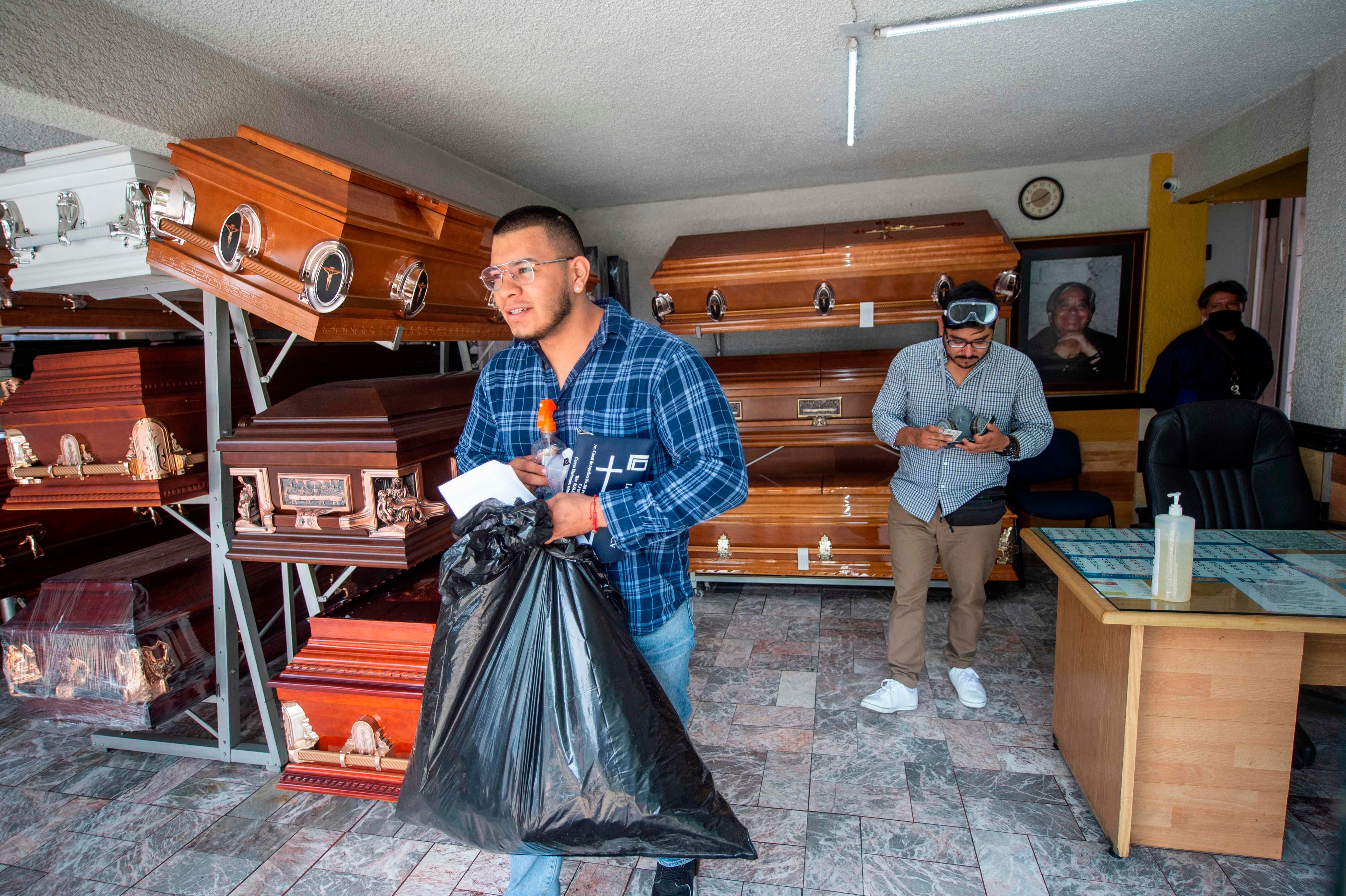 El trabajo en esta empresa familiar que dirige al detalle Bertha Olivos, de 82 años, ha crecido "cuatro veces" desde fines de febrero, cuando se conoció el primer caso de covid-19 en México, añade ya con el rostro ensombrecido Nacho, quien administra la funeraria, carga y traslada cadáveres con su hermano y su tío Ricardo García.