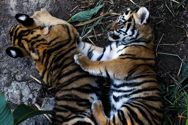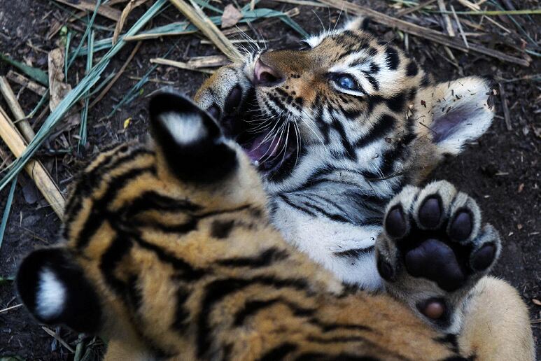 Los cuatro tigres, nacidos a principios de diciembre, "crecen en condiciones óptimas" en el parque de la Fundación Refugio Salvaje (Furesa), de 155 hectáreas, en las afueras de la ciudad de Jayaque, al suroeste de San Salvador, dijo a la AFP el jefe de veterinarios del centro, Luis Martínez.