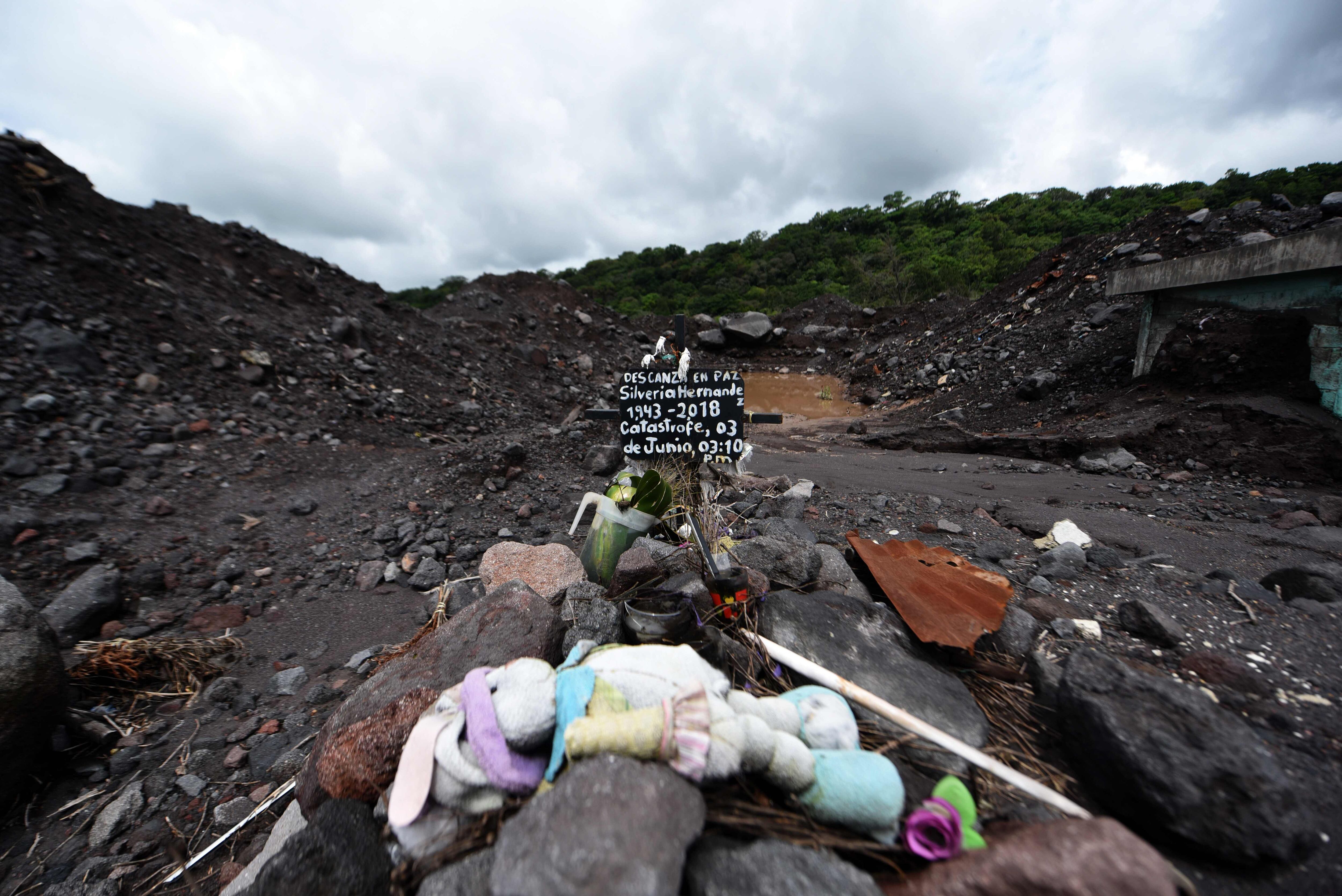 Los Lotes, Guatemala. Arena volcánica, piedras gigantes y hierros retorcidos de algunas casas en ruinas destruidas por la potente erupción del volcán de Fuego, hace un año en Guatemala, son testigos mudos de la tragedia que dejó más de 200 muertos y desaparecidos.