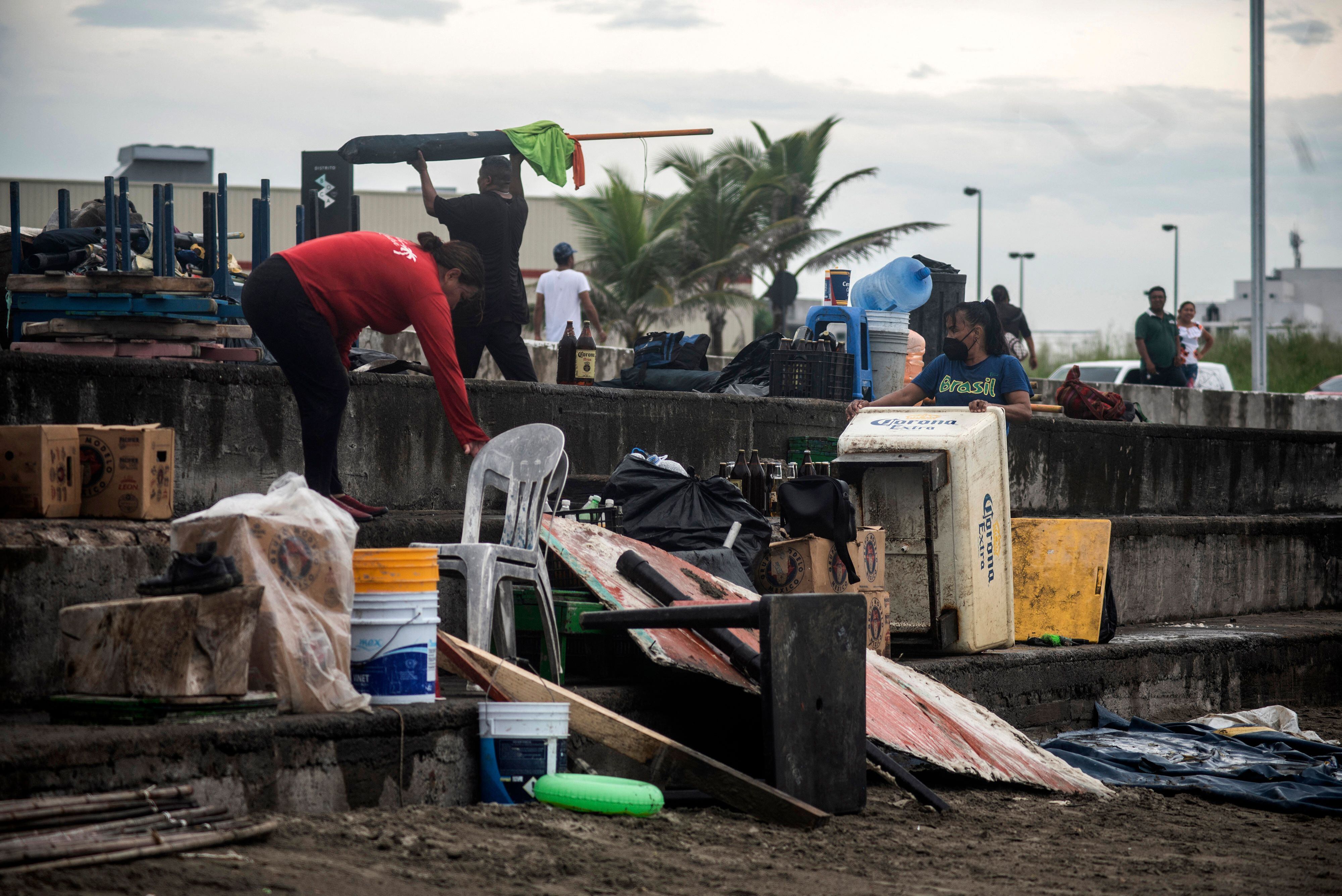 En playa de Tecolutla, Esteban Domínguez, con el rostro protegido por una mascarilla, observó con lágrimas en los ojos la palapa (choza) que albergaba su restaurante reducida a escombros. Tenía esperanza de irse “medio recuperando” de la caída en el turismo por la pandemia de covid–19.