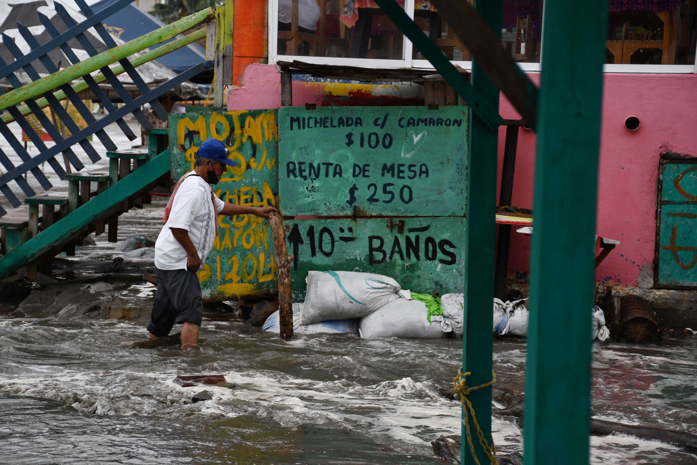 En Casitas, una pequeña comunidad turística de la zona visitada sobre todo por capitalinos, el pescador Domingo Hernández recorrió la playa, con el mar revuelto y unas cuantas palapas que resistieron.