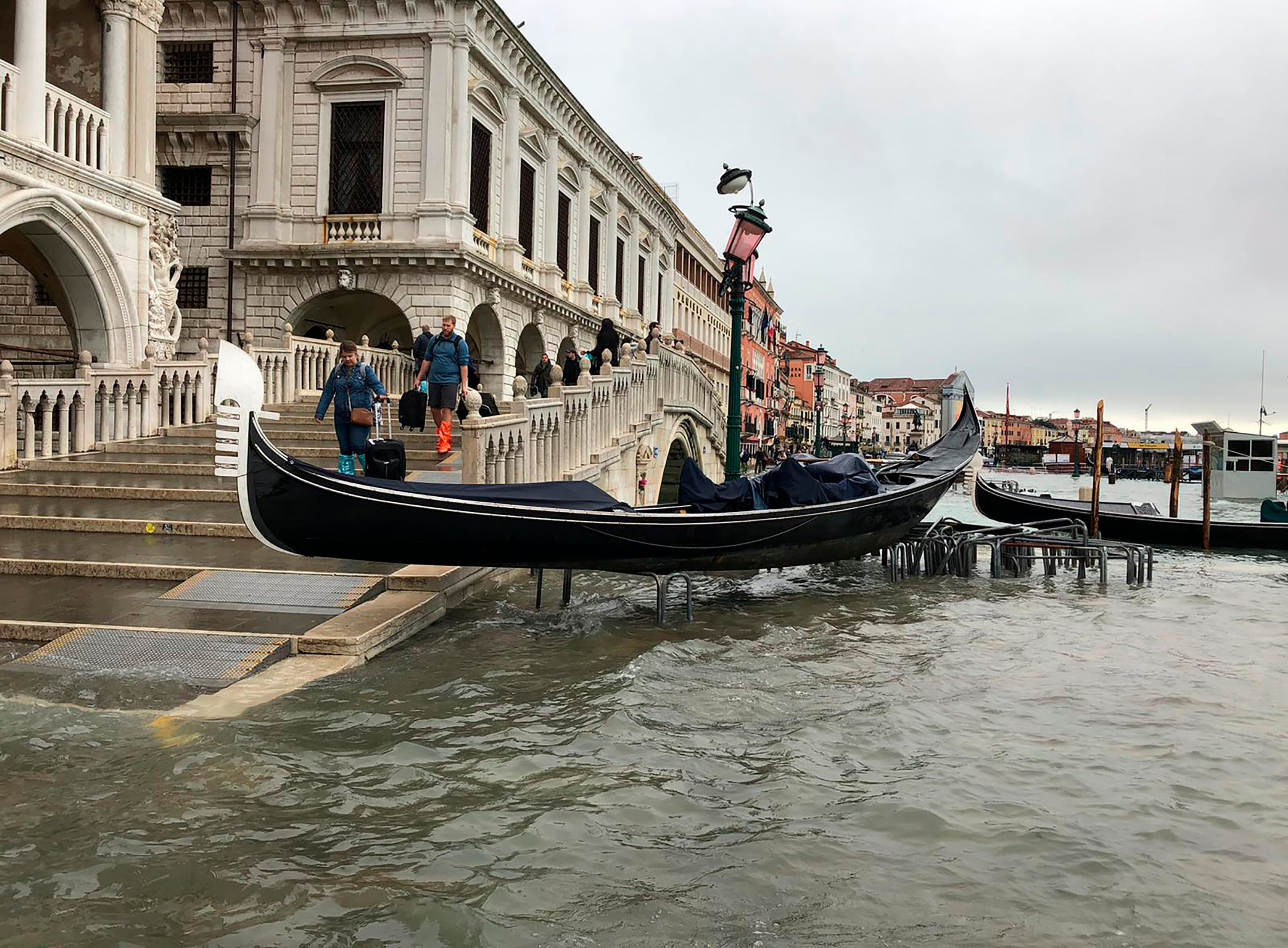 Muchas góndolas también fueron arrastradas por las aguas y por los canales. El servicio de guardacostas emitió un “aviso de peligro”, debido a la presencia de obstáculos sumergidos.