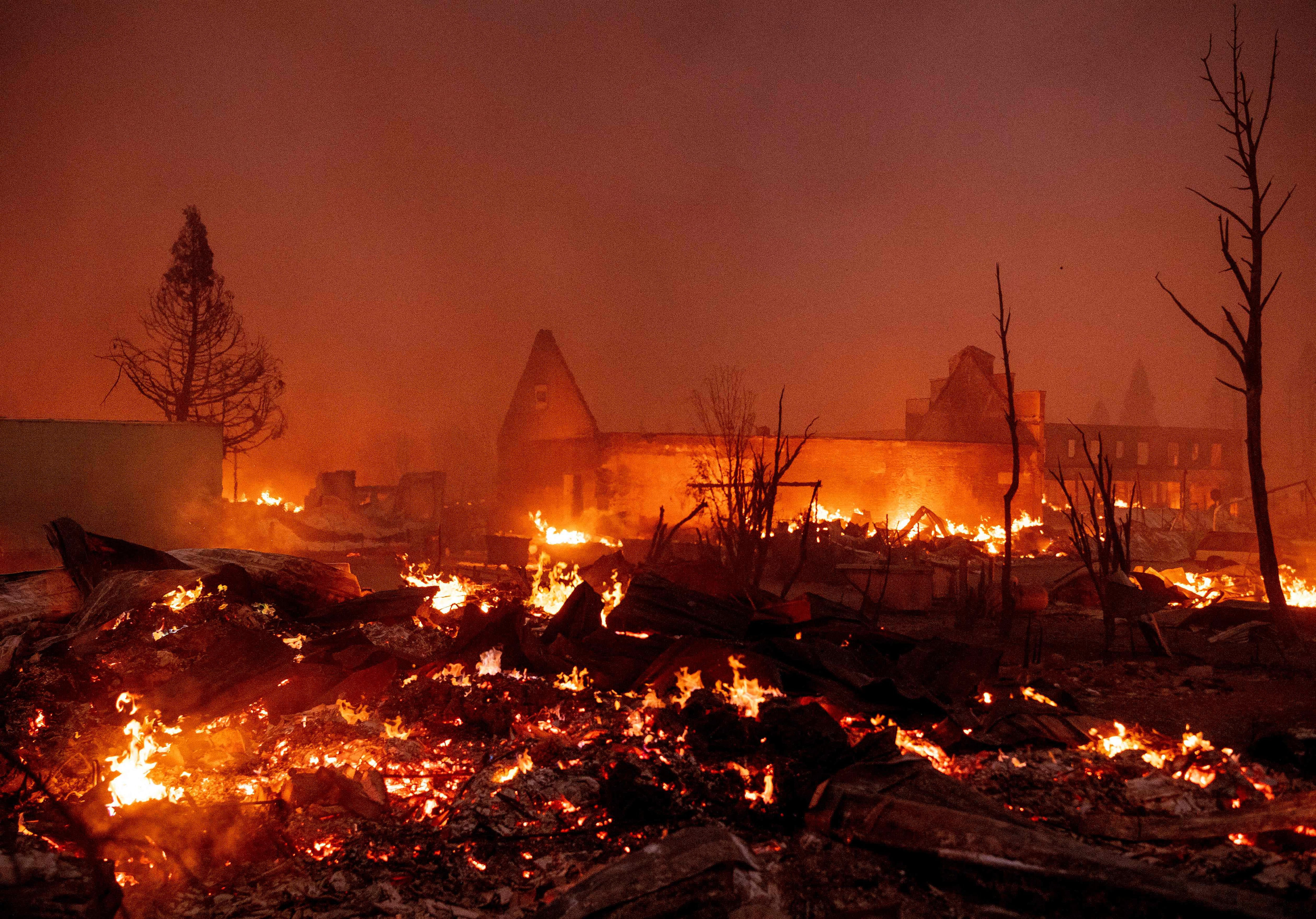 California. Un enorme incendio arrasó un pequeño pueblo del norte de California, horas después de que las autoridades exhortaron a los residentes a evacuar inmediatamente sus hogares.