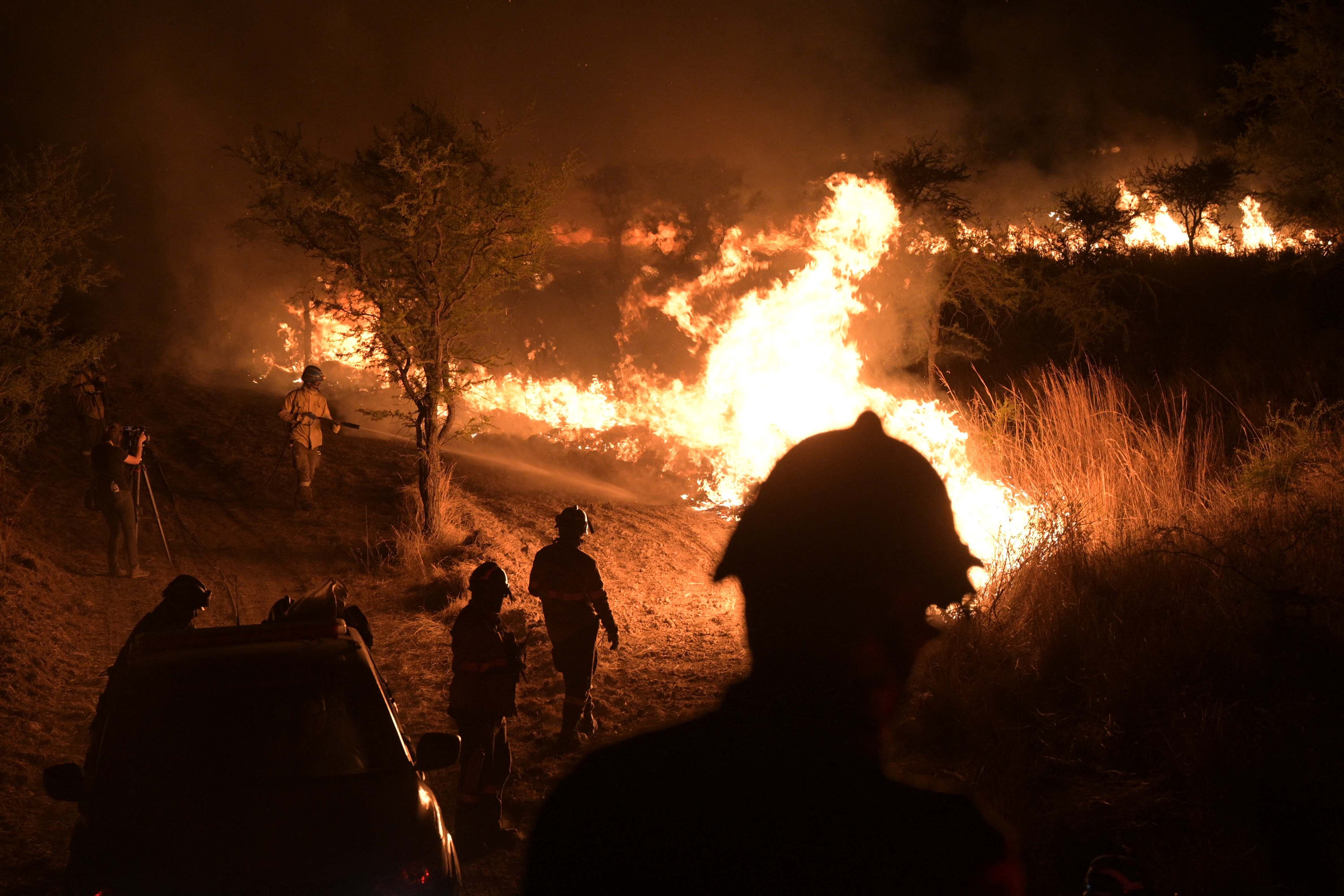 Aviones hidrantes y helicópteros combaten los focos que reaparecen aquí y allá. Brigadistas encienden cortafuegos en frentes de varios kilómetros para desviar el fuego de zonas pobladas o productivas.