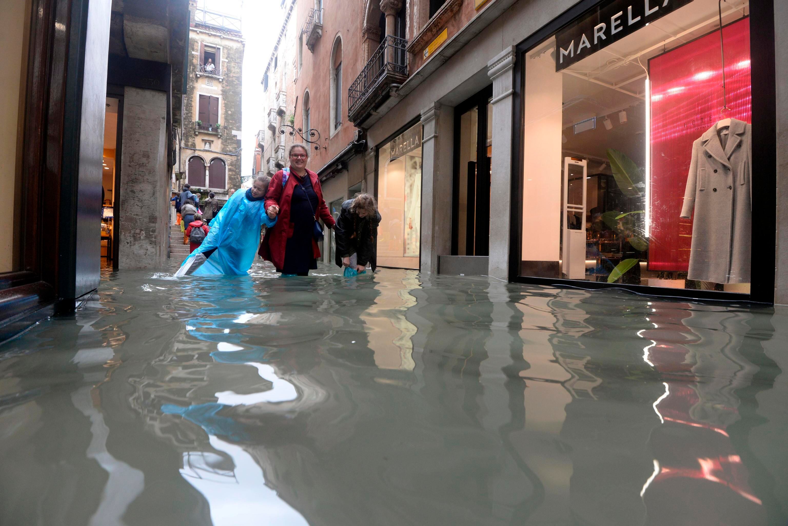 En Venecia, miles de turistas quedaron el lunes semiatrapados por el mal tiempo y el fenómeno del "agua alta" registró el pico récord de 1,56 metros, lo que obligó a cerrar todos los accesos a la Plaza de San Marcos.