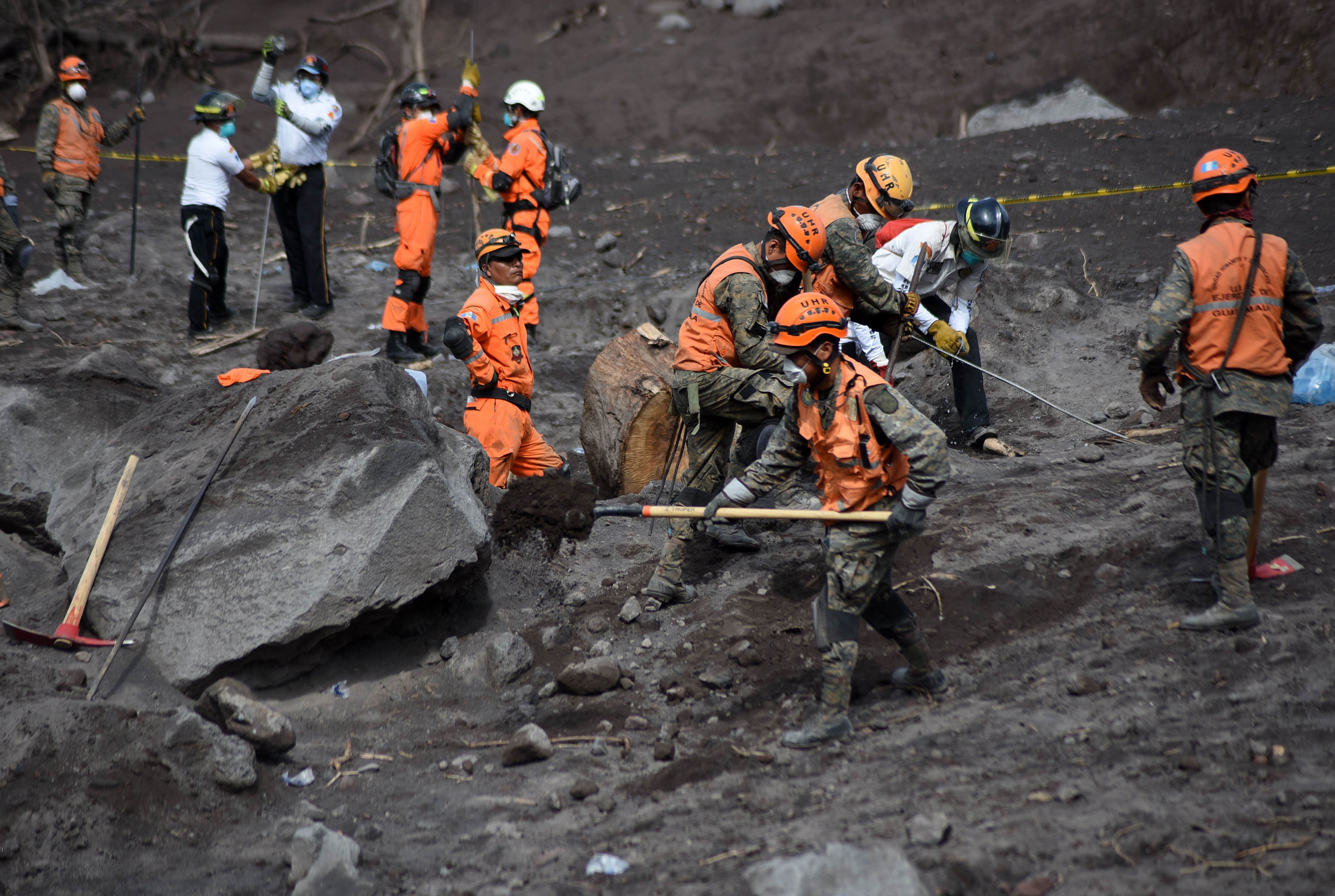 Los socorristas seguían tratando de rescatar víctimas mortales entre toneladas de ceniza que sepultaron varias comunidades en medio de condiciones adversas, mientras el coloso no daba tregua al registrar explosiones que lanzaban columnas de ceniza.