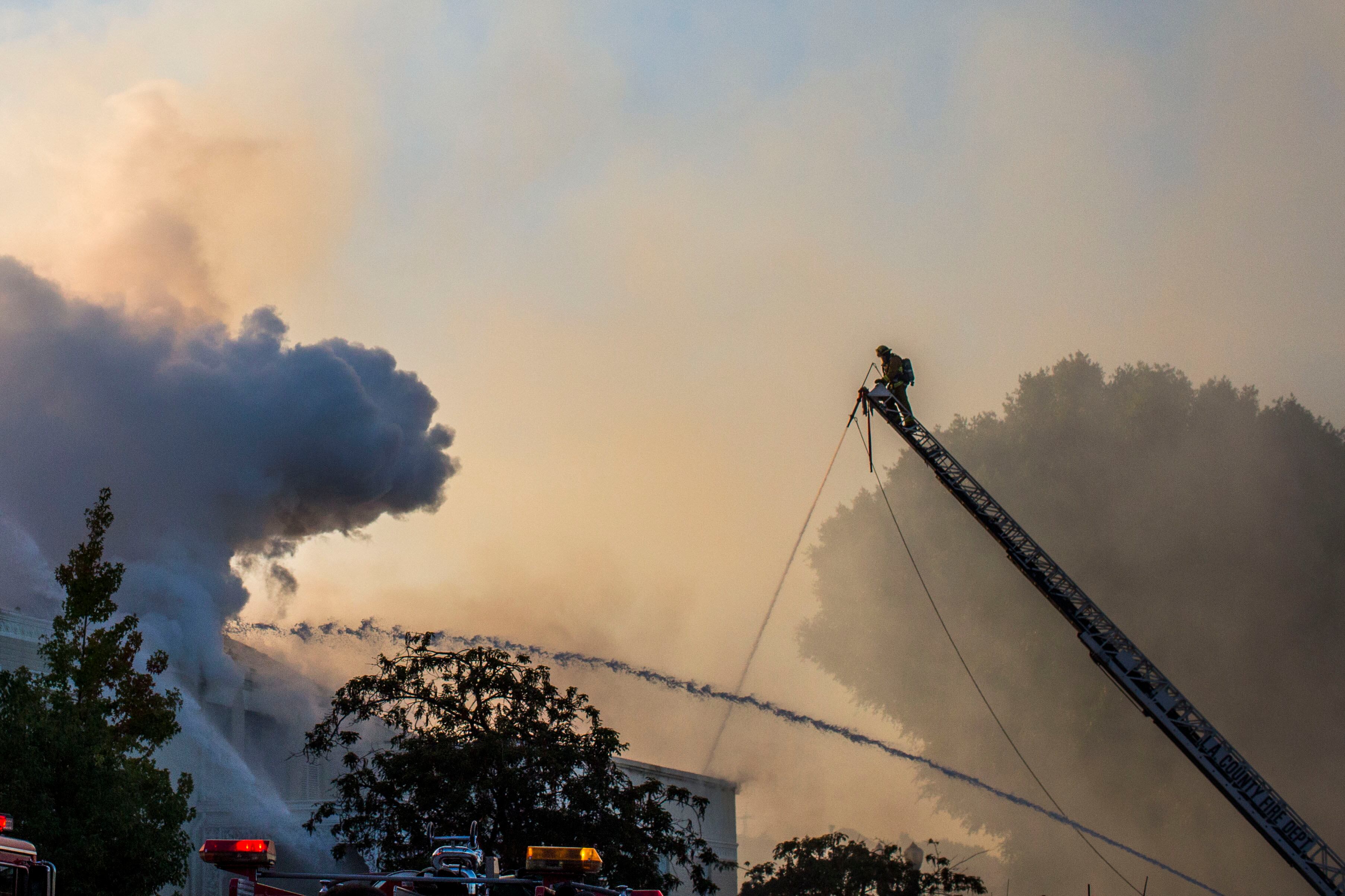 Entretanto, los bomberos seguían batallando contra el incendio "Easy" en Simi Valley, en el noroeste de Los Ángeles, que se desató el miércoles y llegó peligrosamente cerca de la Biblioteca Presidencial Ronald Reagan, que escapó del siniestro.