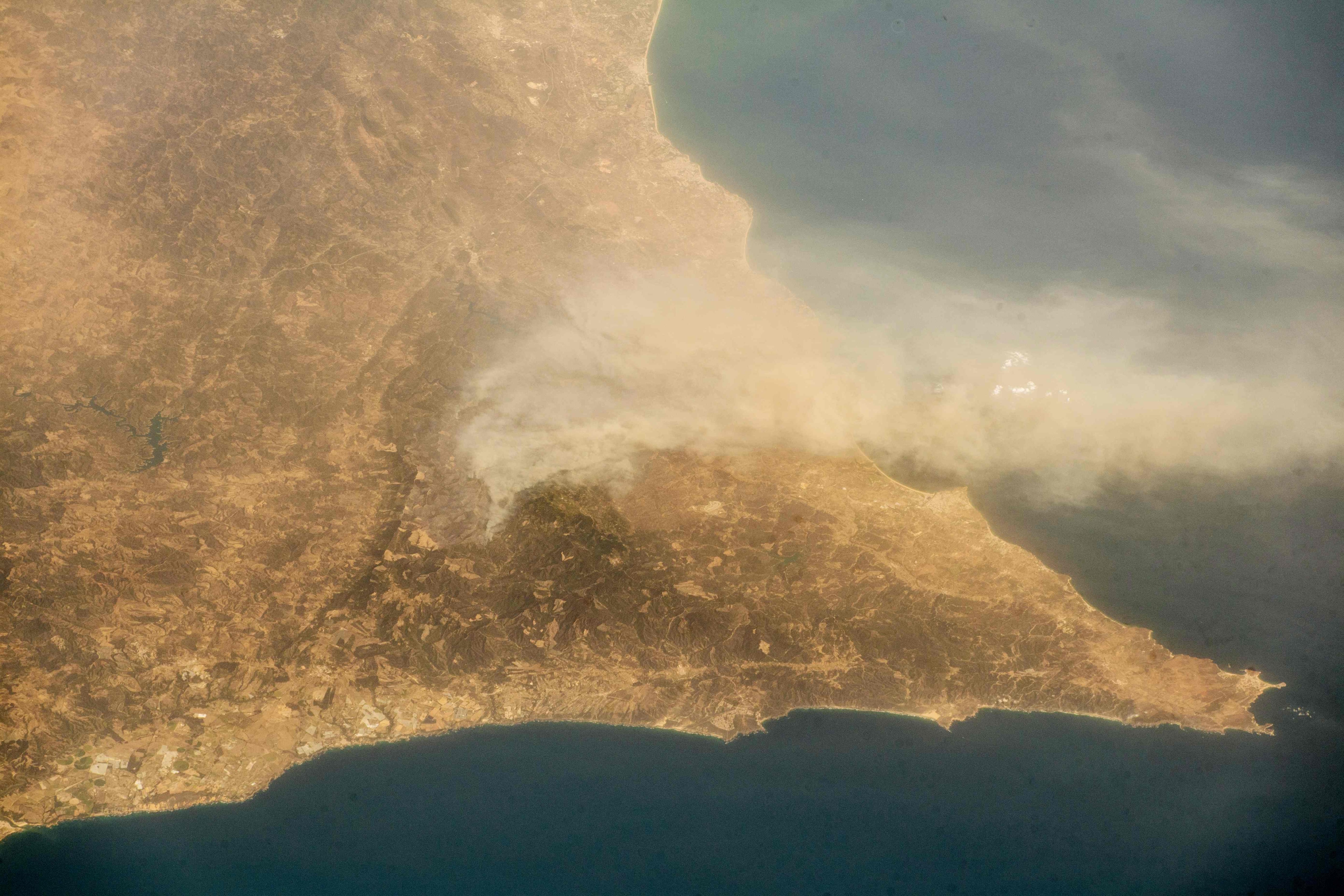 Lisboa. Un incendio forestal visible desde la Estación Espacial Internacional (EEI) amenazaba este martes una población turística en el sur de Portugal, con la península Ibérica golpeada por temperaturas extremas que empezarán a sentirse en el norte de Europa.