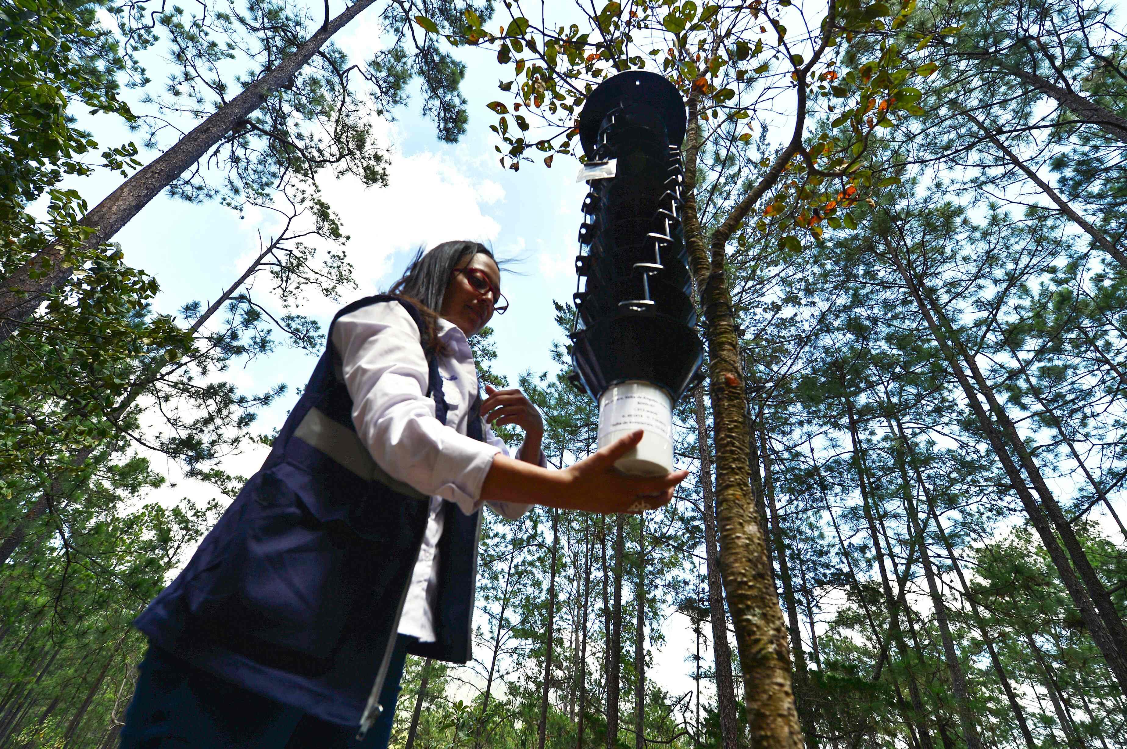 Valle de Ángeles, Honduras. Una agrónoma coloca trampas en una zona boscosa en las afueras de Tegucigalpa para monitorear el regreso de un insecto que años atrás destruyó extensas superficies de pinos. Su aparición se debió a una sequía provocada por El Niño, un fenómeno que amenaza nuevamente la agricultura y las fuentes de agua de consumo en Centroamérica.